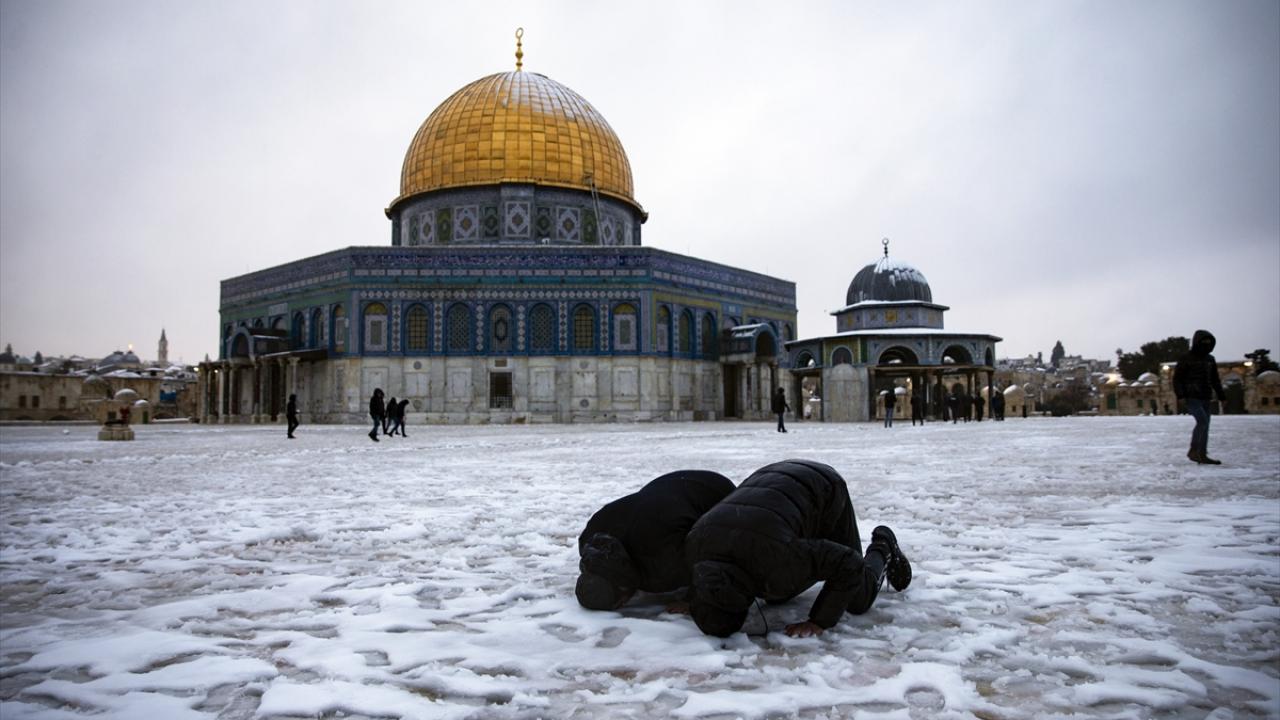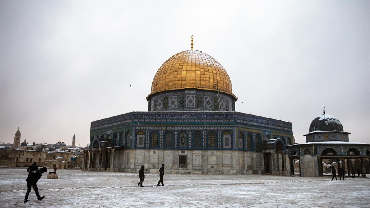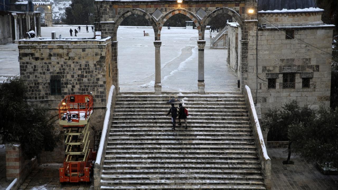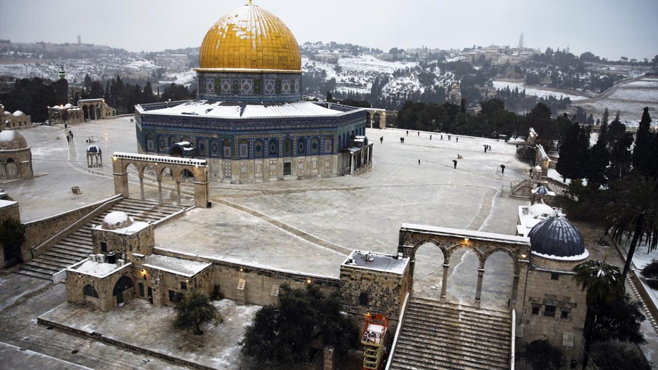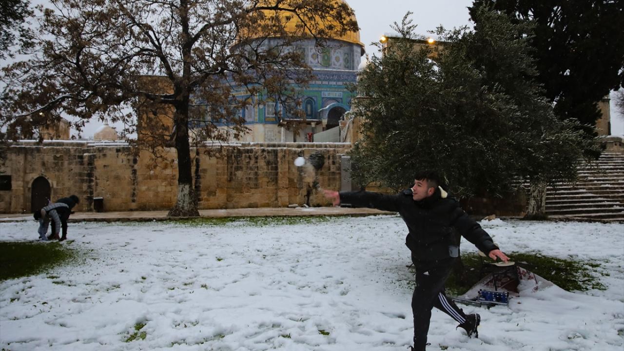 Kutsal şehir Kudüs'e mevsimin ilk karı düştü. Mescid-i Aksa ve avlusunda yer alan Kubbetüs Sahra, kar yağışıyla birlikte güzel görüntü oluşturdu.