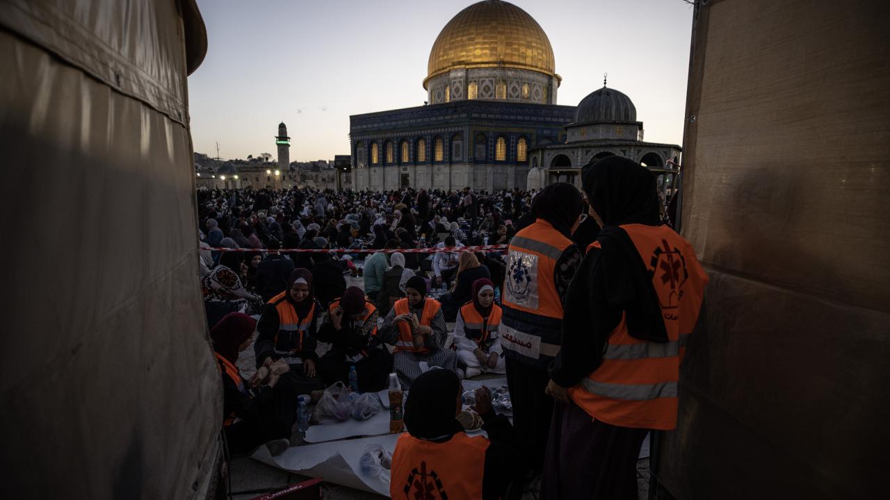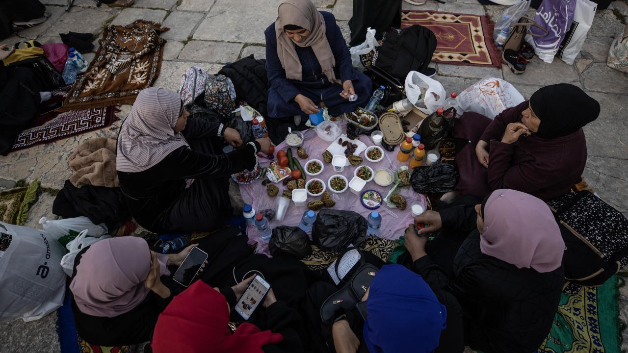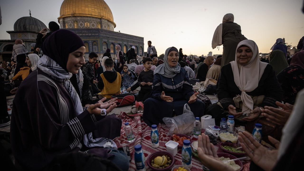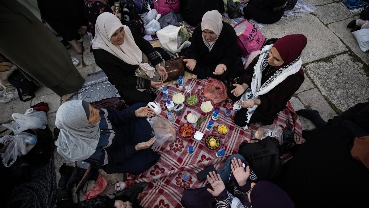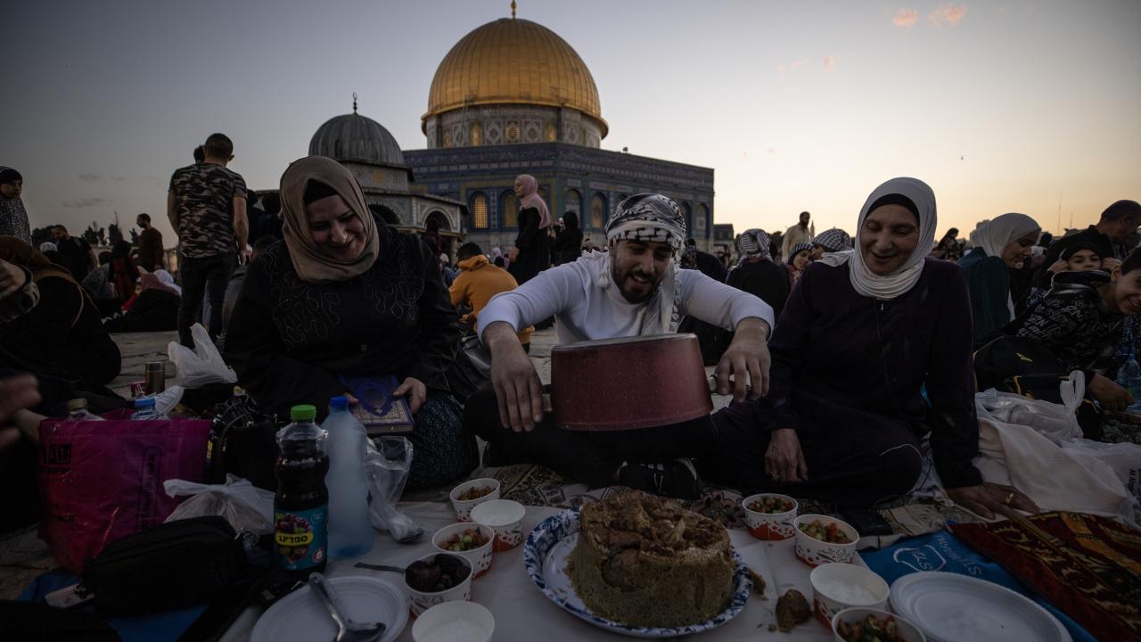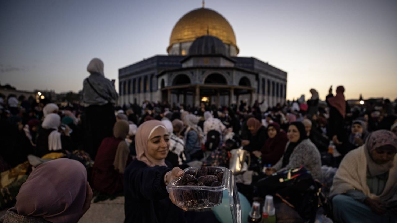 Binlerce Filistinli ve yabancı Müslüman, başı rahmet, ortası bereket, sonu bağışlanma olan ramazan ayını, her akşam İslam'ın ilk kıblesi Mescid-i Aksa'da oruç açıp ibadet ederek idrak ediyor.