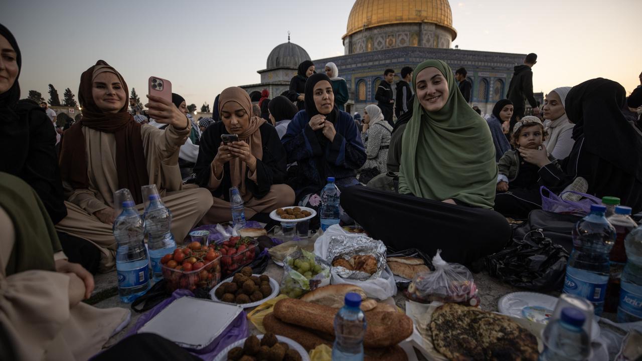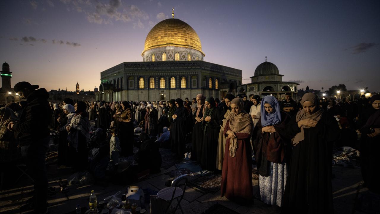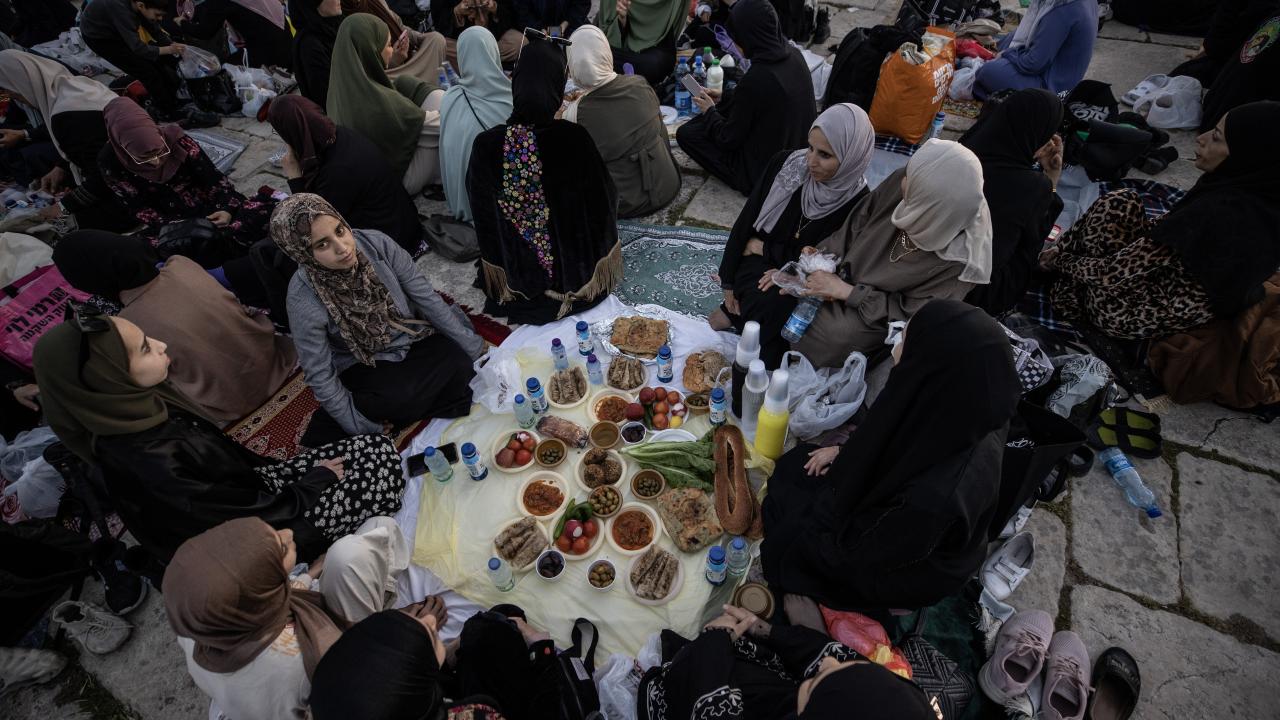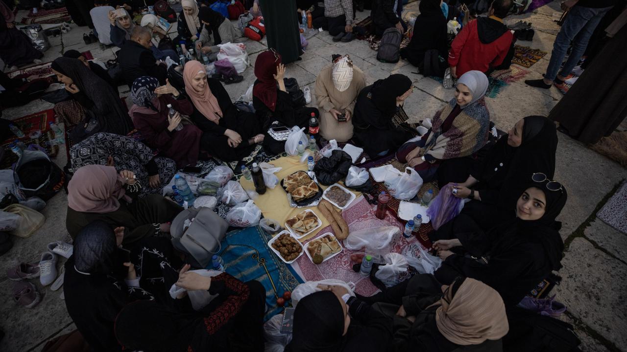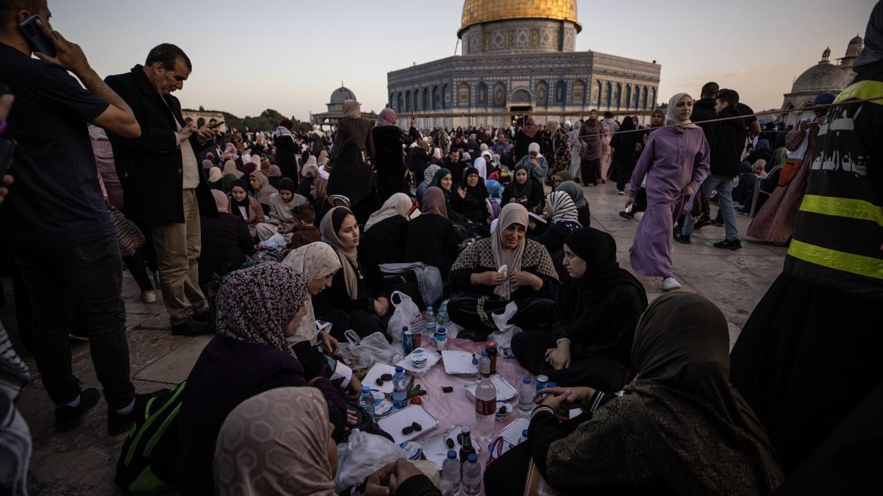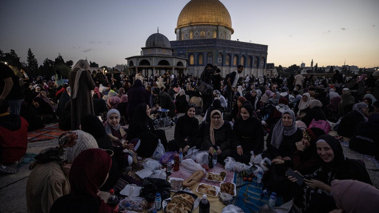 Binlerce Filistinli ve yabancı Müslüman, başı rahmet, ortası bereket, sonu bağışlanma olan ramazan ayını, her akşam İslam'ın ilk kıblesi Mescid-i Aksa'da oruç açıp ibadet ederek idrak ediyor.