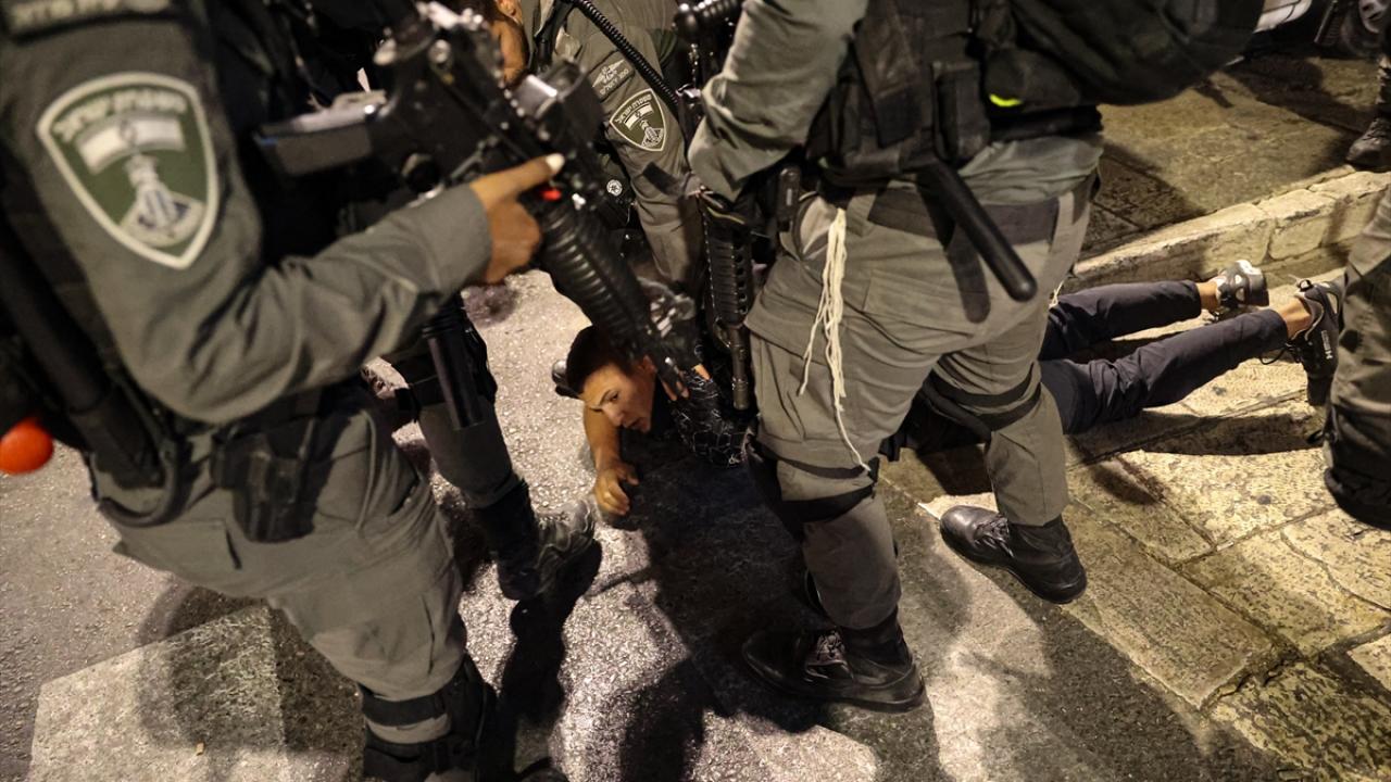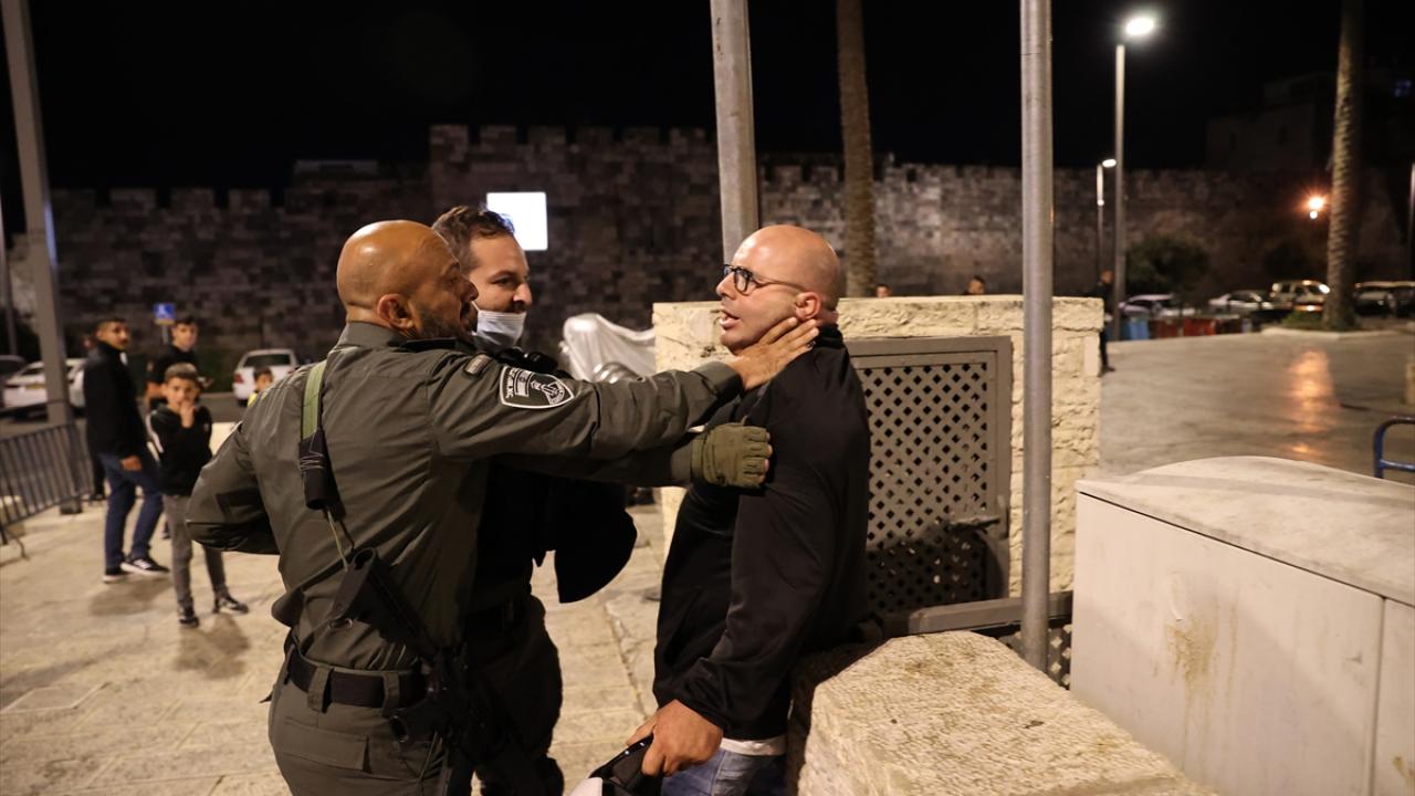 Doğu Kudüs'ün Şam Kapısı yakınında toplanan bir grup Yahudi yerleşimci, Filistinlilere ırkçı söylemlerde bulunarak kışkırtmaya çalıştı.