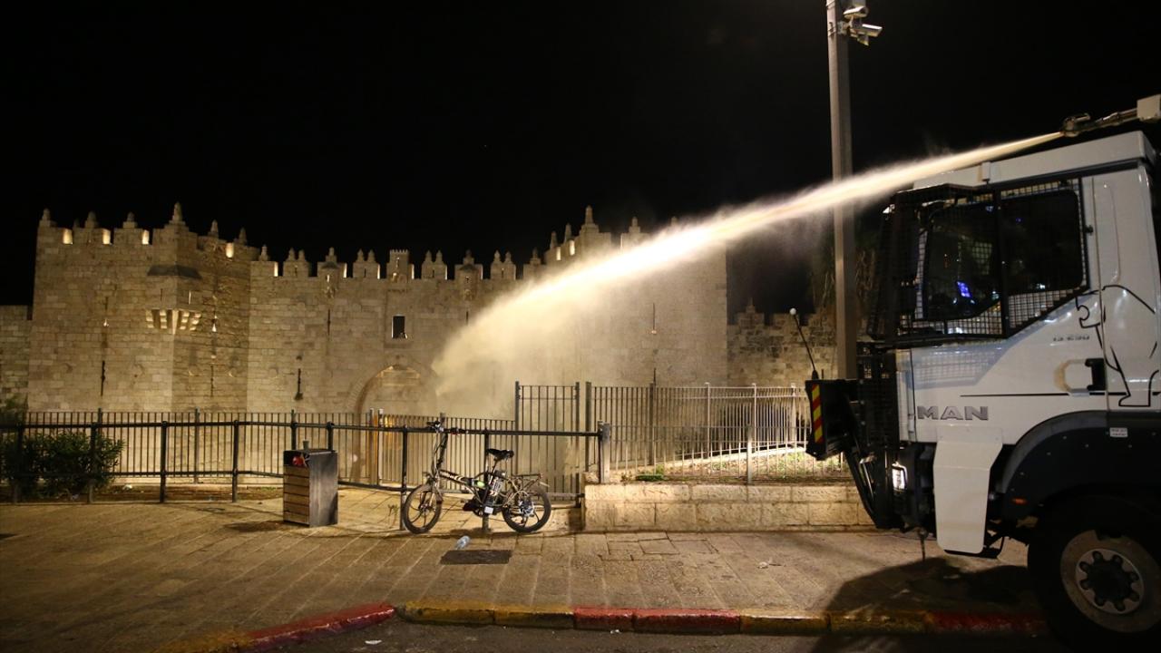 İsrail güçleri, Filistinlilere gaz bombası ve tazyikli suyla müdahale etti.