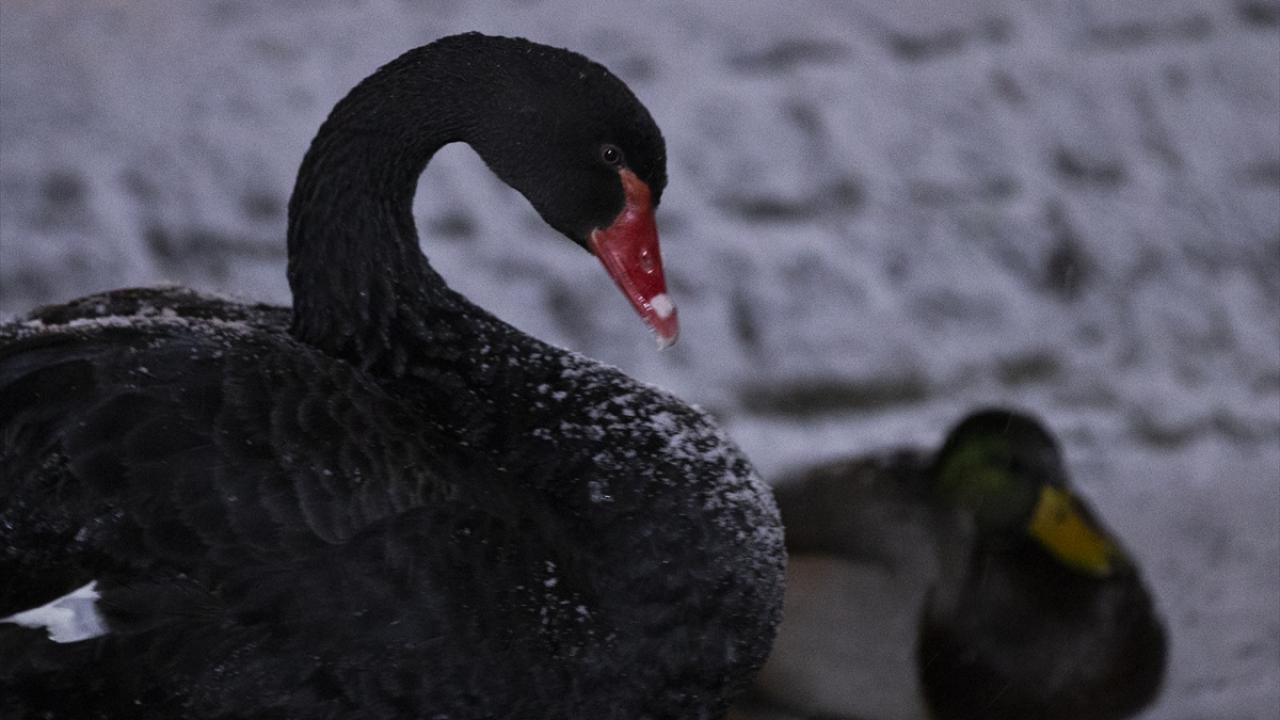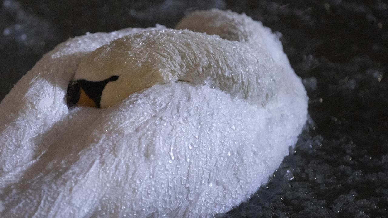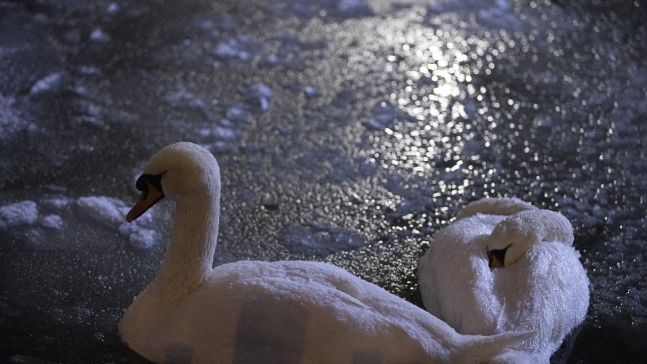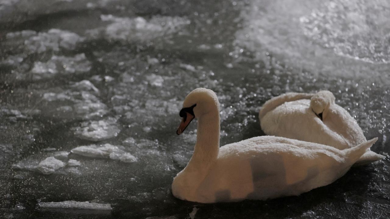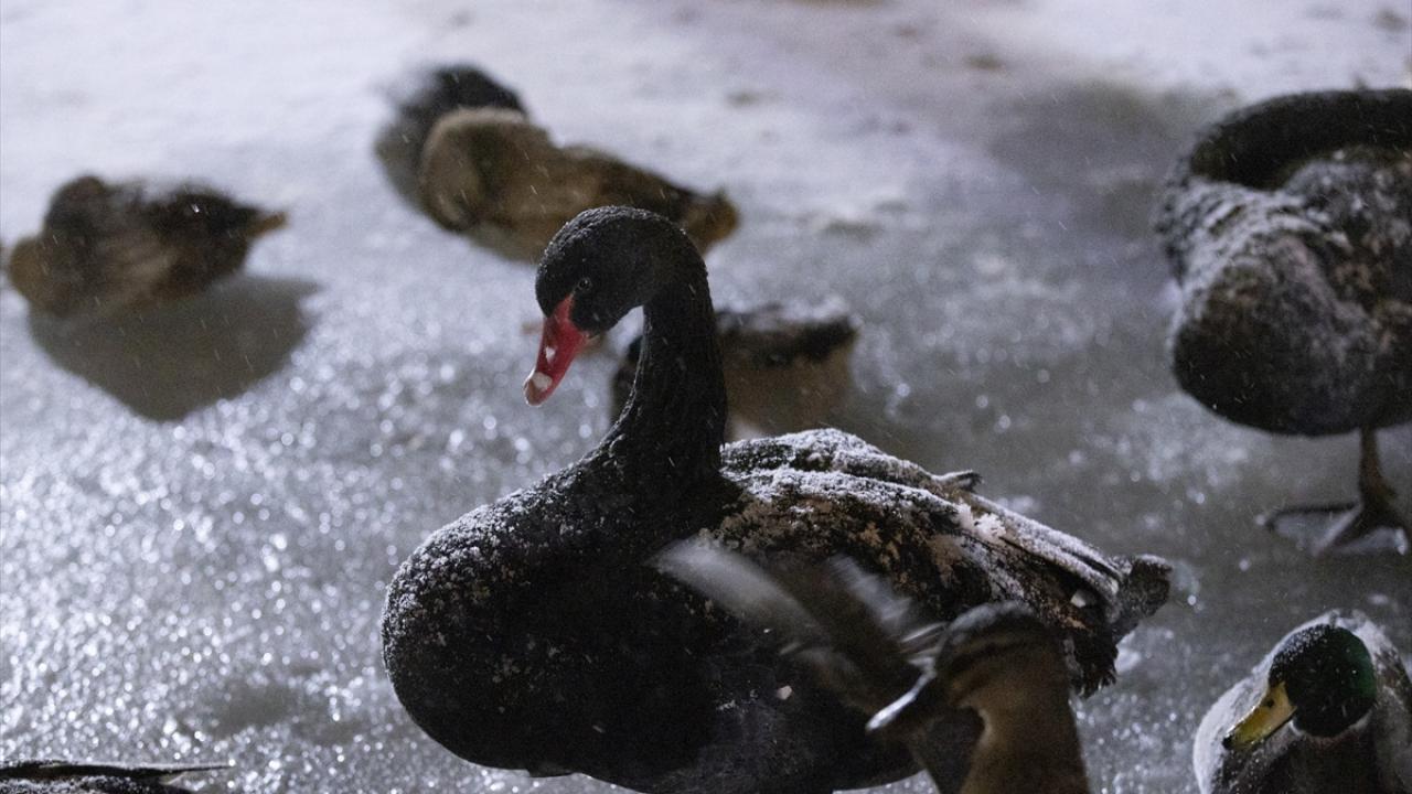 Havuzdaki fıskiyelerin altlarında buz kalıpları oluşurken, parkın ev sahipleri kuğular ve ördeklerin yaşam alanı daraldı.