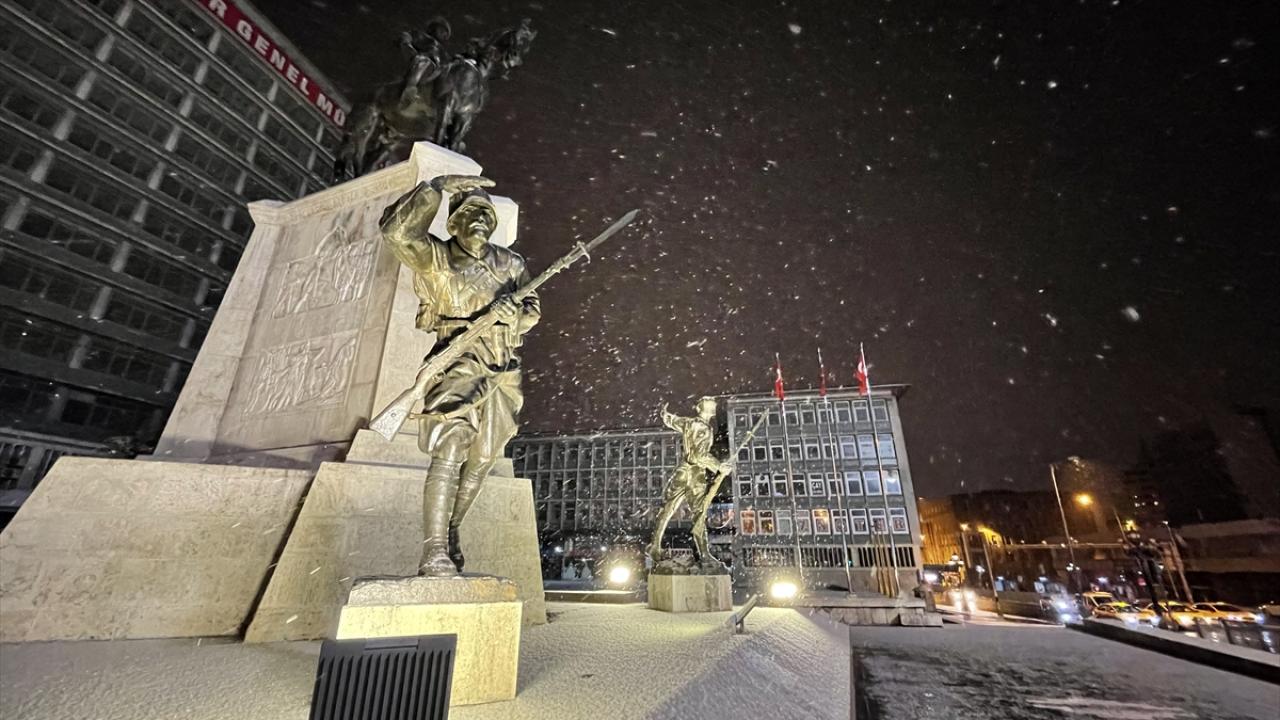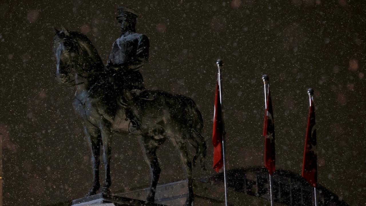 Kent merkezini etkisi altına alan kar yağışıyla Anıtkabir ve Ulus Meydanı da beyaza büründü.