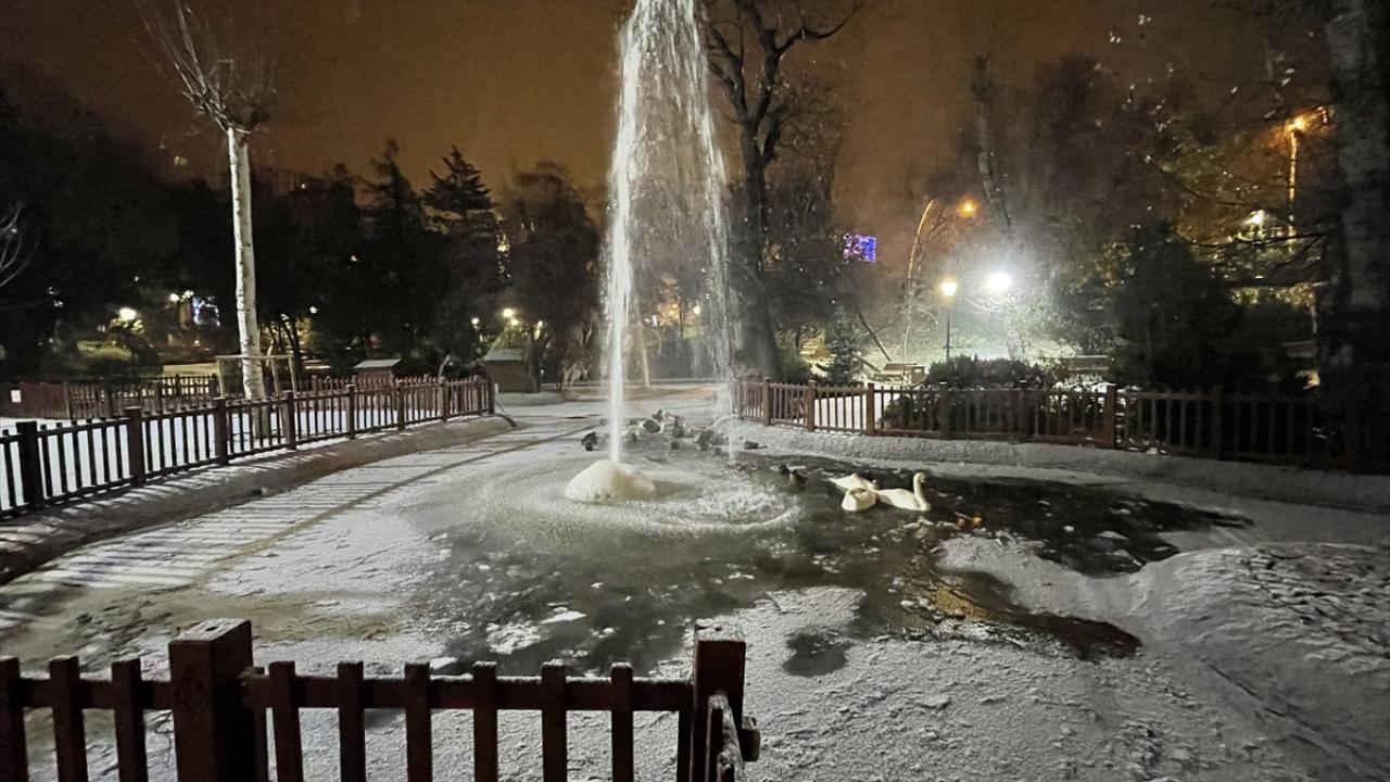 Ankara'da başlayan kar yağışı sabah saatlerine kadar etkisini sürdürürken, hava sıcaklığı gün boyunca en yüksek sıfırın altında 5 derece olarak ölçüldü. Kuğulu Park'ta bulunan havuz soğuk hava nedeniyle buz tuttu.