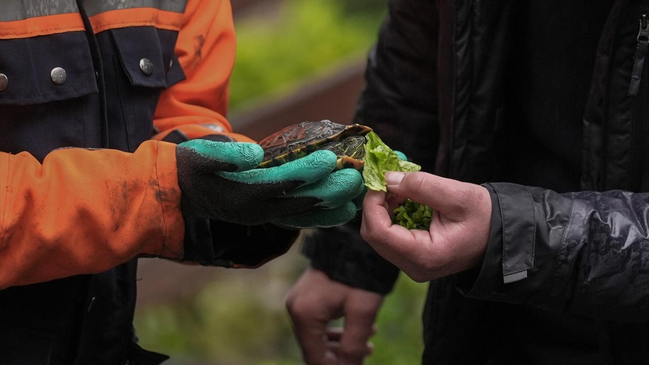 Su kaplumbağası Çimen`in, yeni yuvasına kavuşma serüveninin en yakın şahitleri belediye çalışanları oldu.