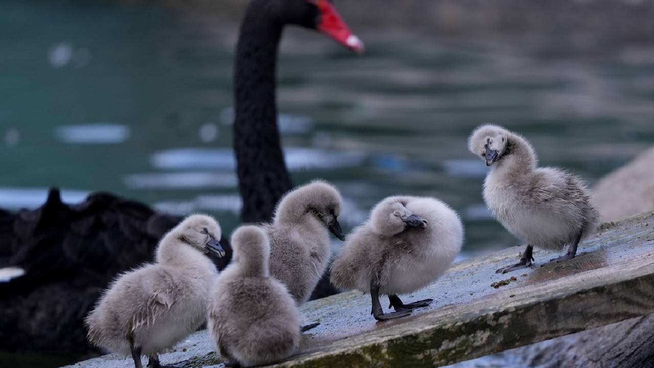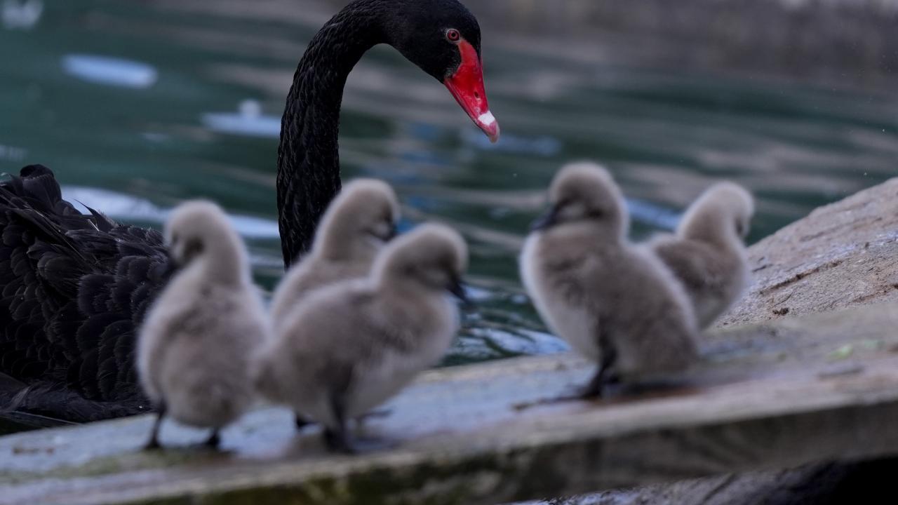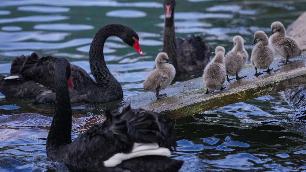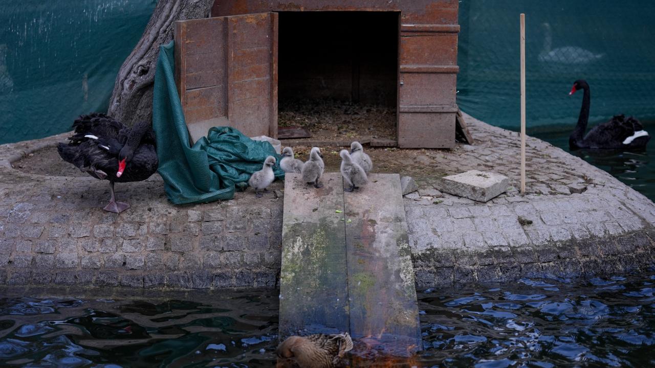 Başkent Ankara'nın simge yerlerinden olan Kuğulu Park'ta dünyaya gelen 5 siyah kuğu yavrusu, ziyaretçilerin ilgi odağı oldu.