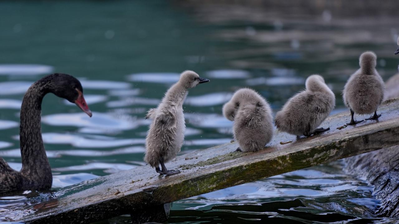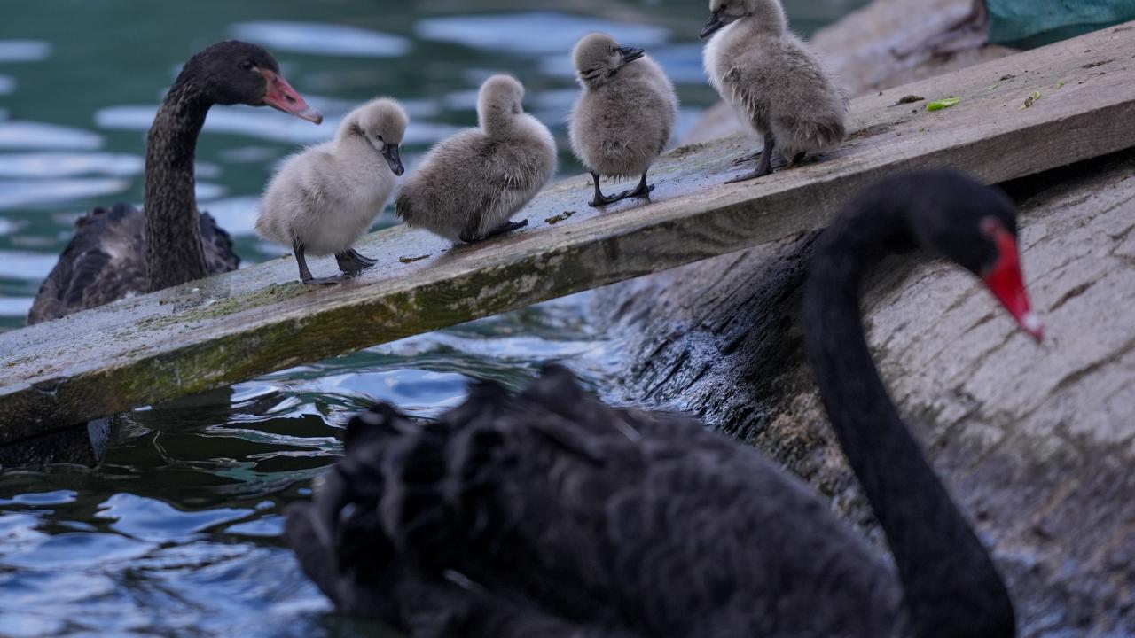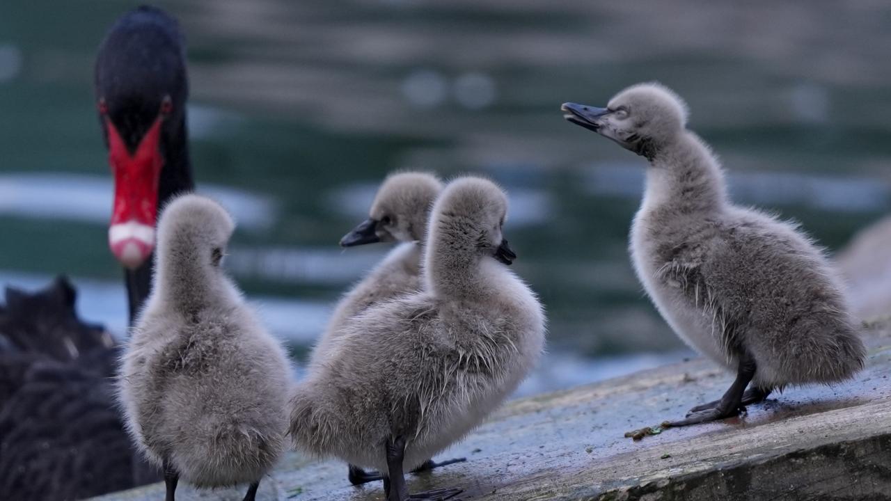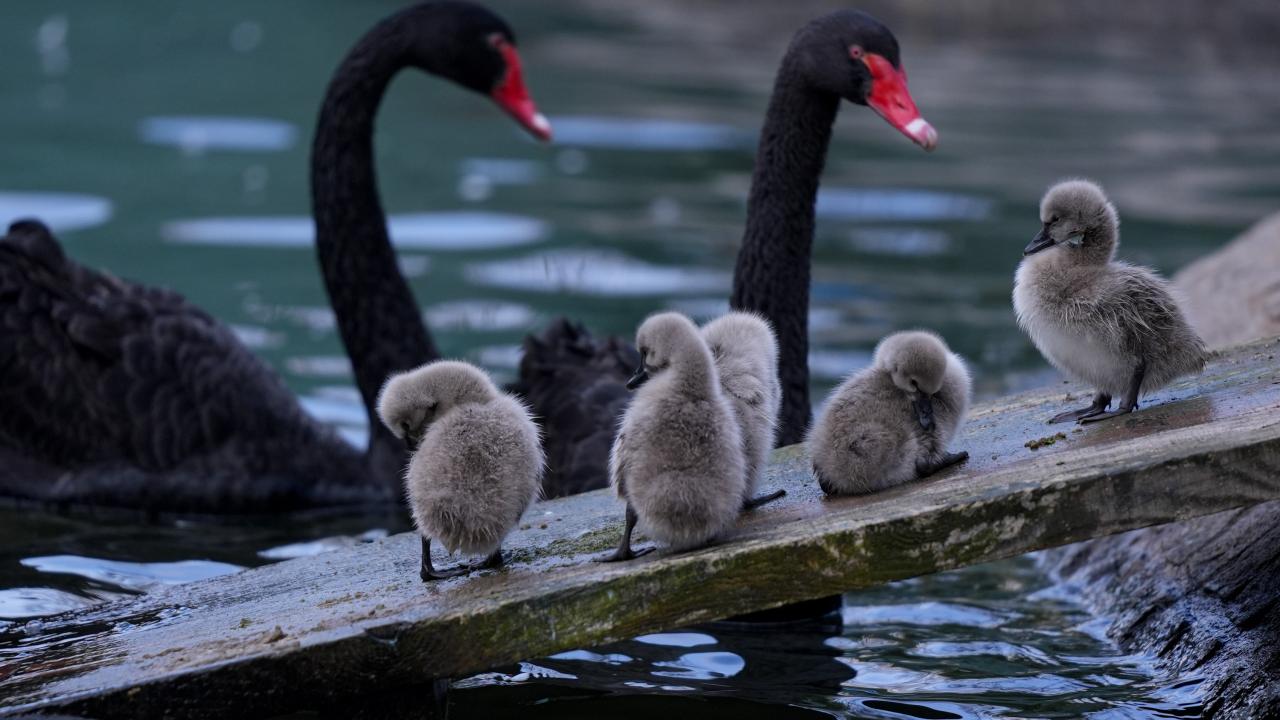 Başkent Ankara'nın simge yerlerinden olan Kuğulu Park'ta dünyaya gelen 5 siyah kuğu yavrusu, ziyaretçilerin ilgi odağı oldu.