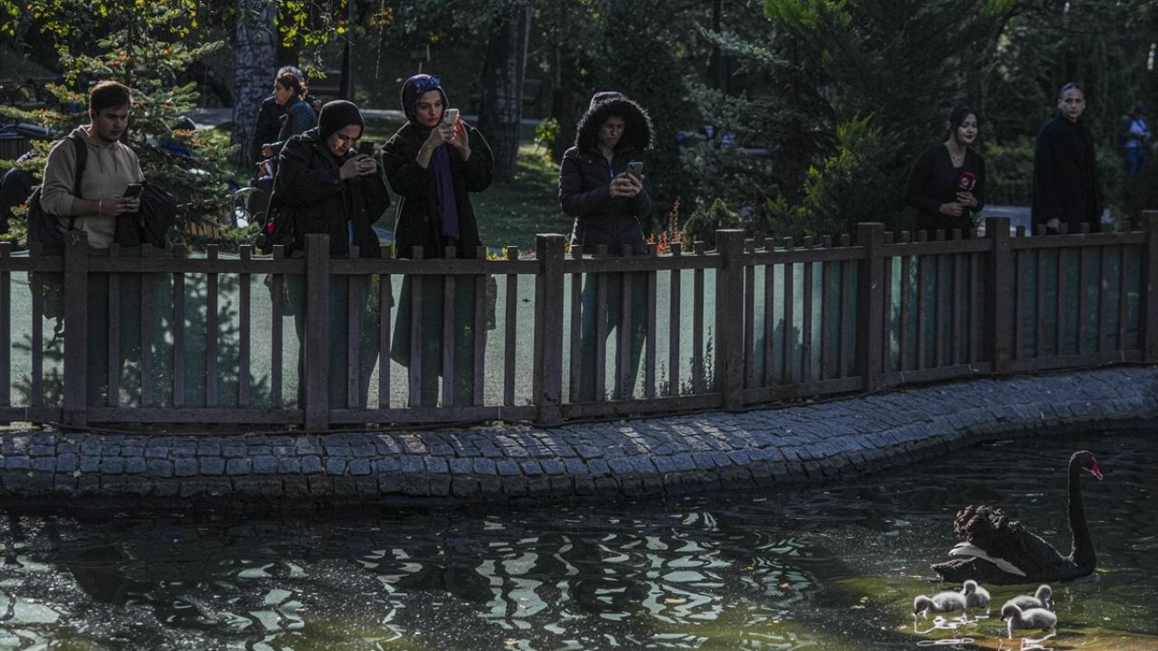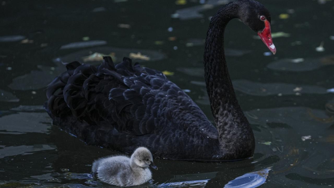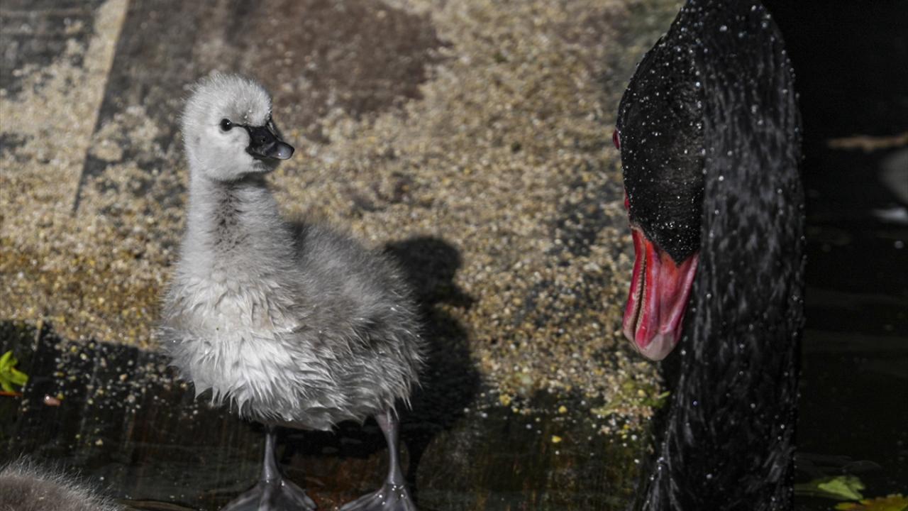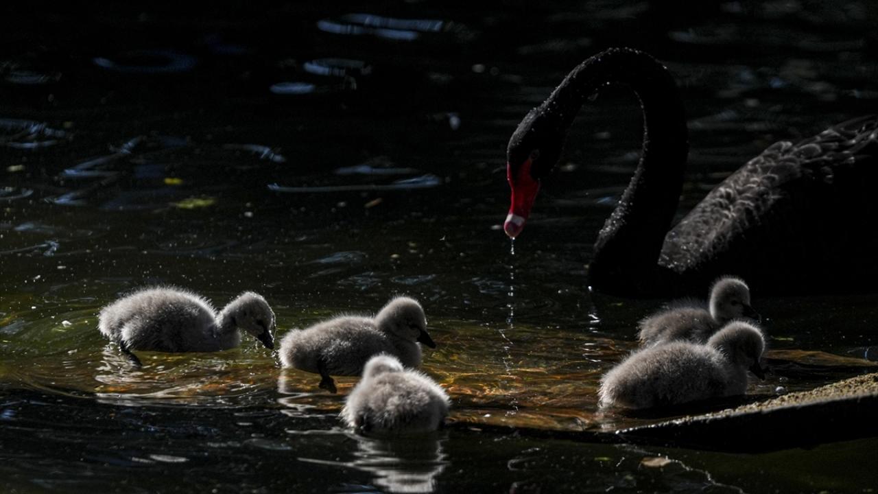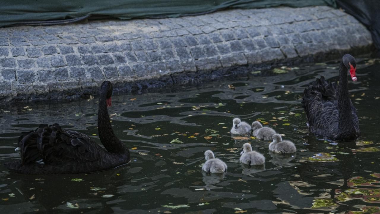Ankara'nın simgelerinden Kuğulu Park'ta dünyaya gelen 5 siyah kuğu yavrusu suyla buluştu.