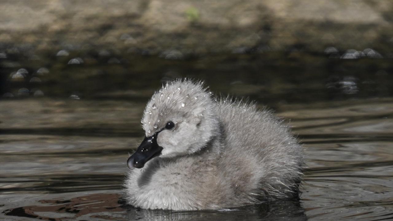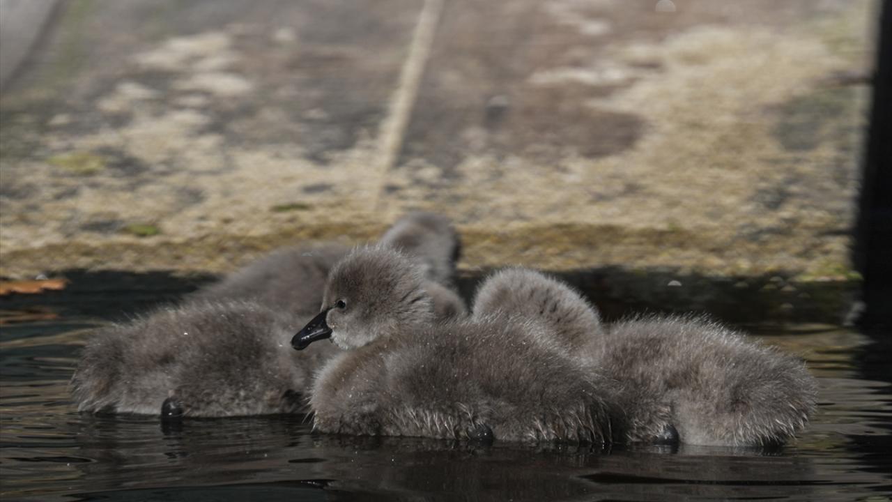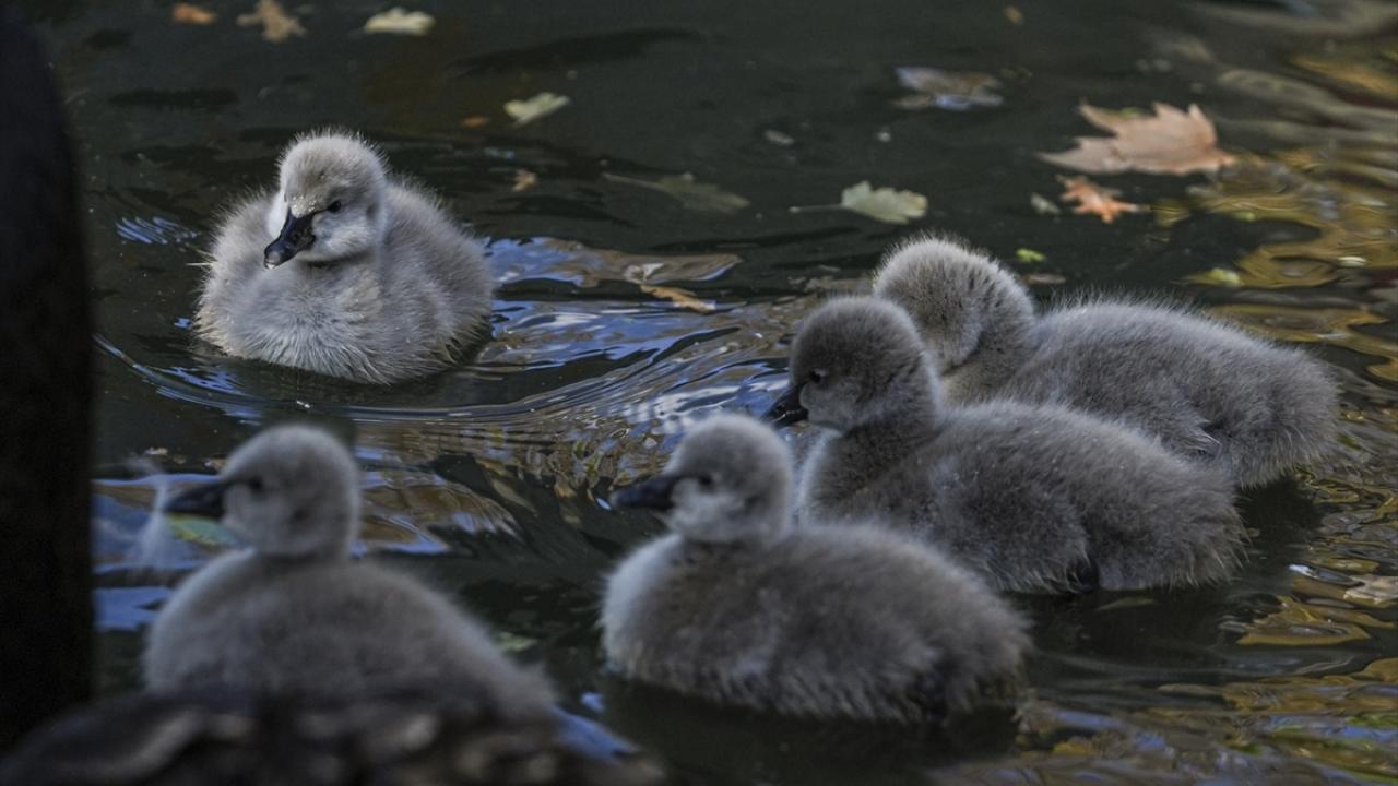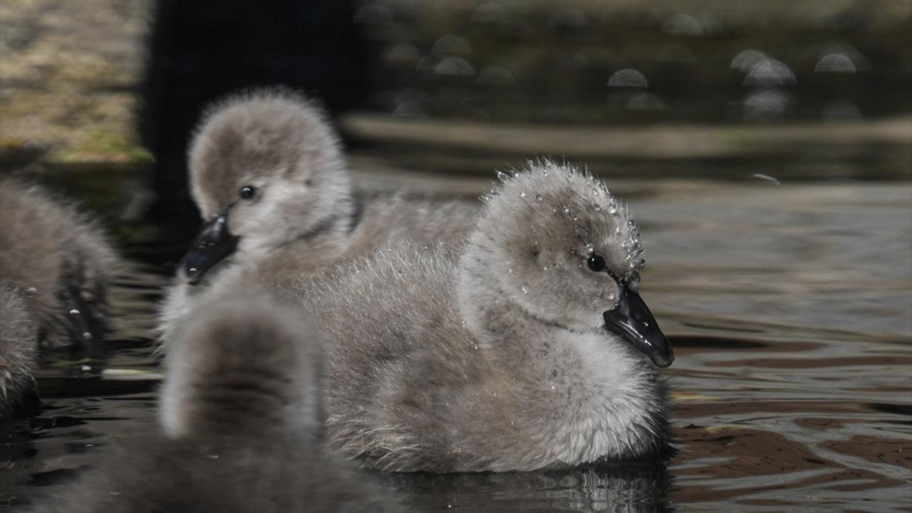 Kuğulu Park'ta dünyaya gelen 5 kuğu yavrusu suyla buluştu