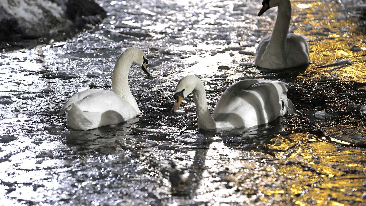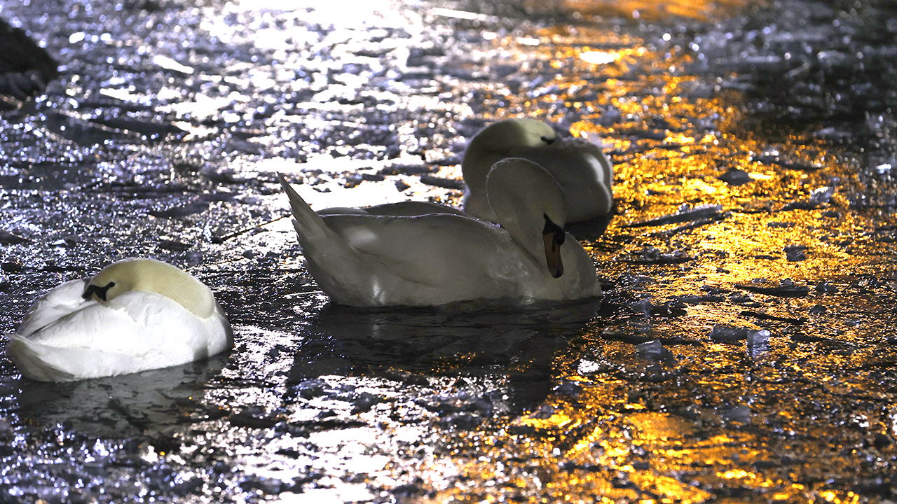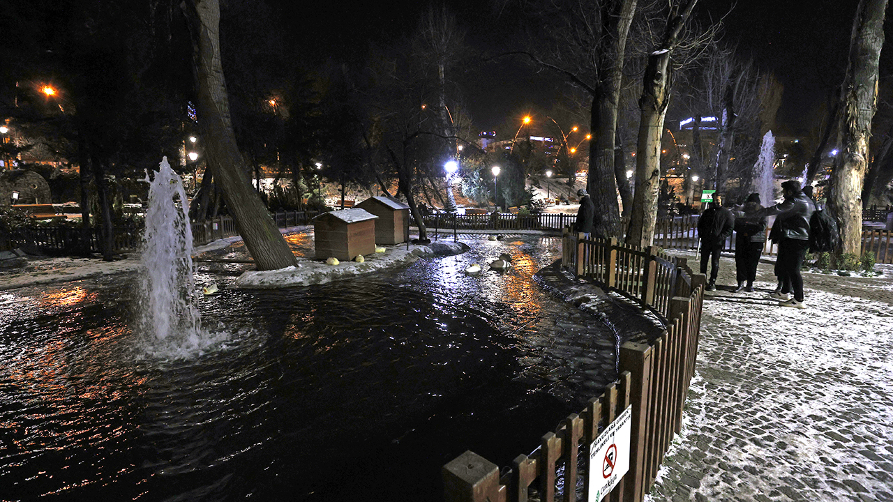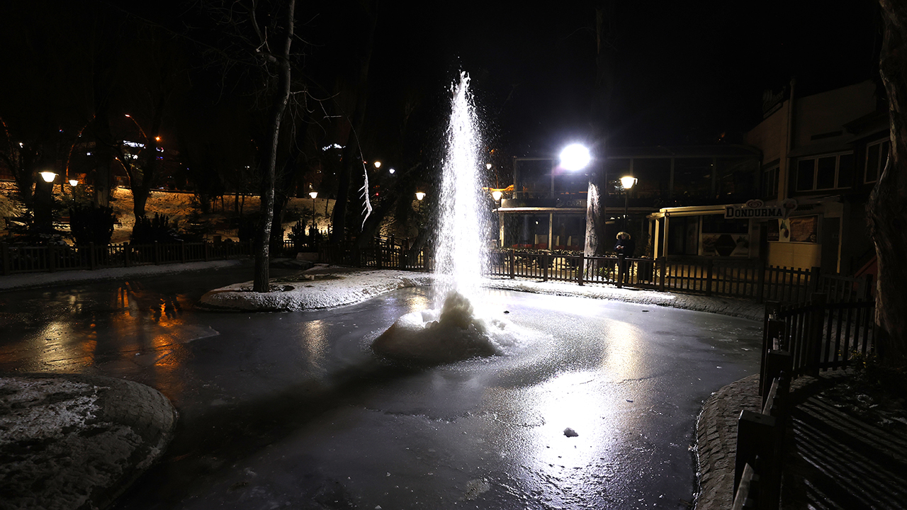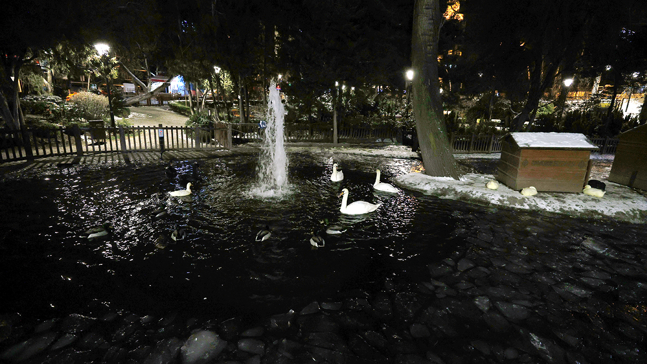 Ankara'nın simgelerinden Kuğulu Park'ta bulunan havuz, soğuk hava nedeniyle buz tuttu.