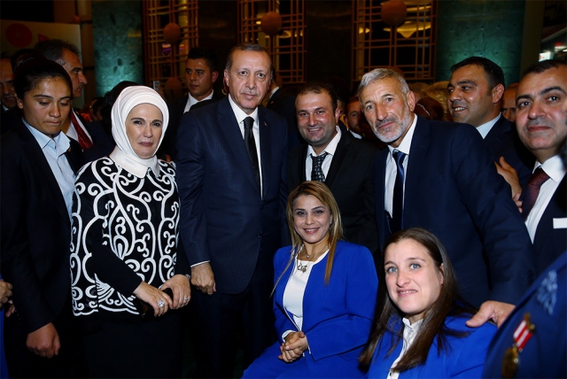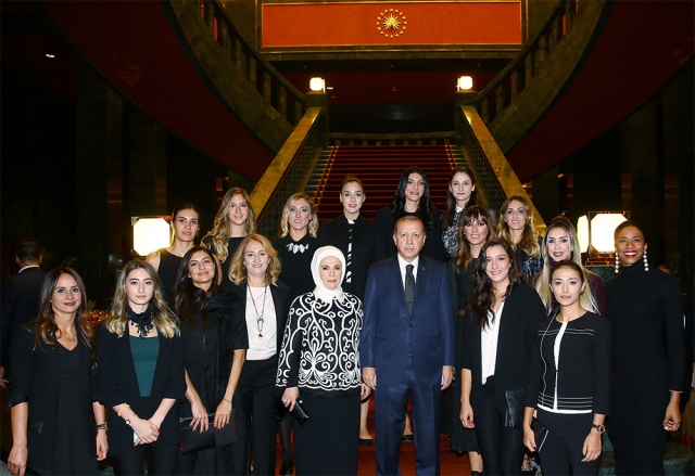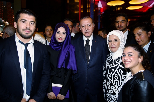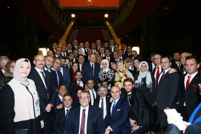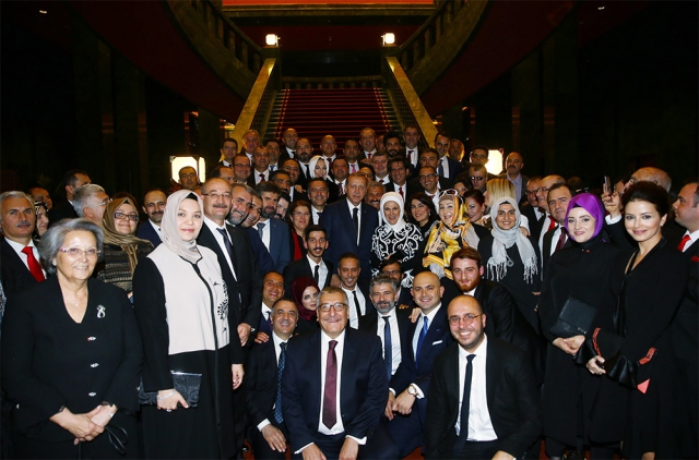 29 Ekim Cumhuriyet Bayramı Resepsiyonu, Cumhurbaşkanı Recep Tayyip Erdoğan ve eşi Emine Erdoğan'ın ev sahipliğinde Cumhurbaşkanlığı Külliyesi'nde gerçekleştirildi. Cumhurbaşkanı Erdoğan, resepsiyona katılan davetliler ile fotoğraf çektirdi.