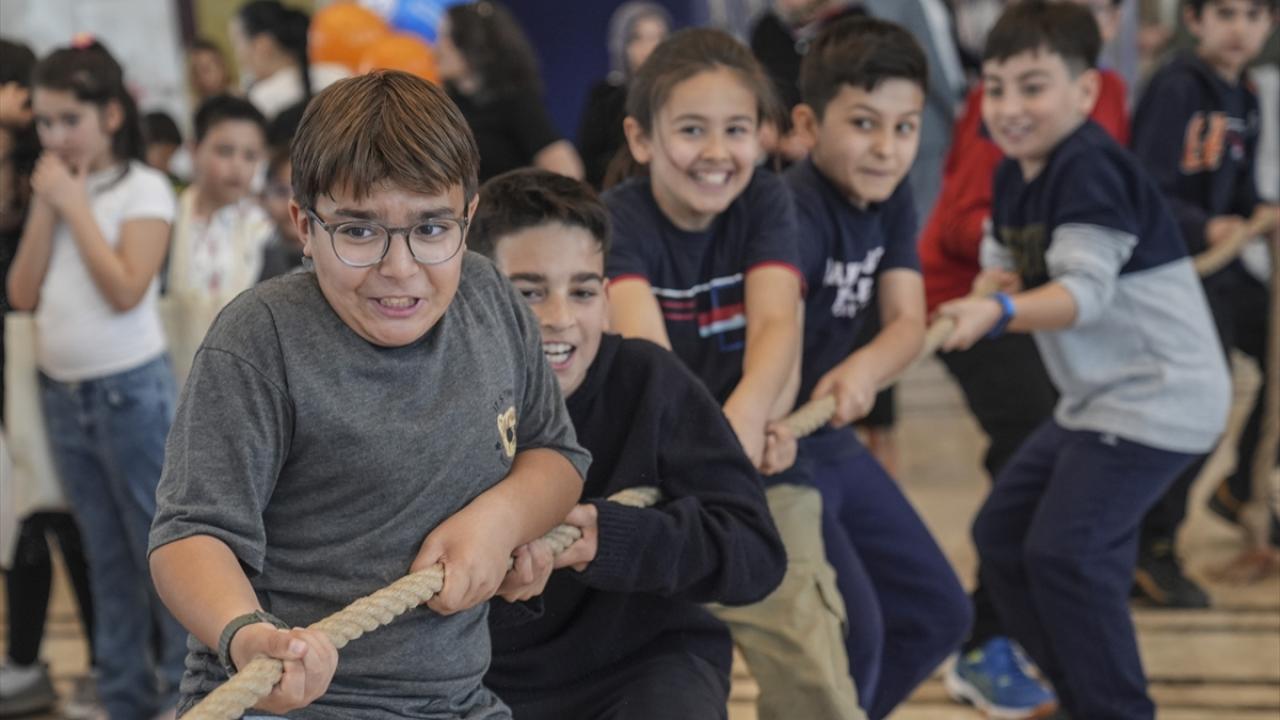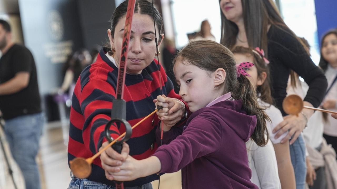 Çocuklar, Gençlik ve Spor Bakanlığınca hazırlanan alanda ok atma ve halat çekme gibi çeşitli yarışmalar yaptı.