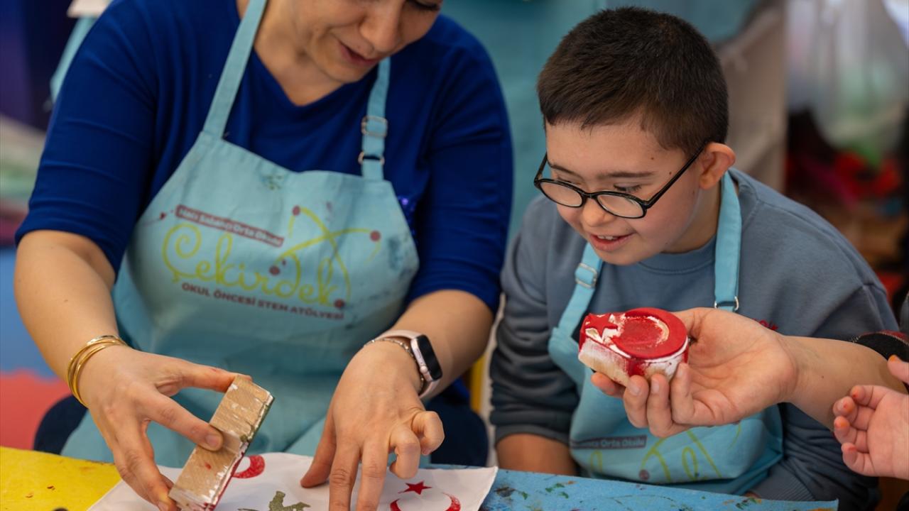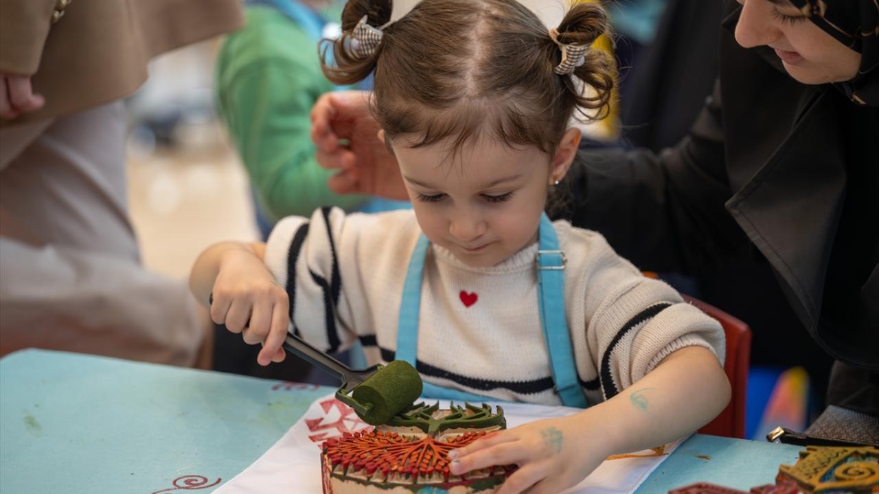 Çocuklar, Milli Eğitim Bakanlığınca hazırlanan "Bayram Kesesi" ve "Mendil Baskı" atölyelerinde, Ramazan Bayramı için hediye kesesi hazırladı, ahşap malzemelerle de mendil üzerinde baskı yaptı.