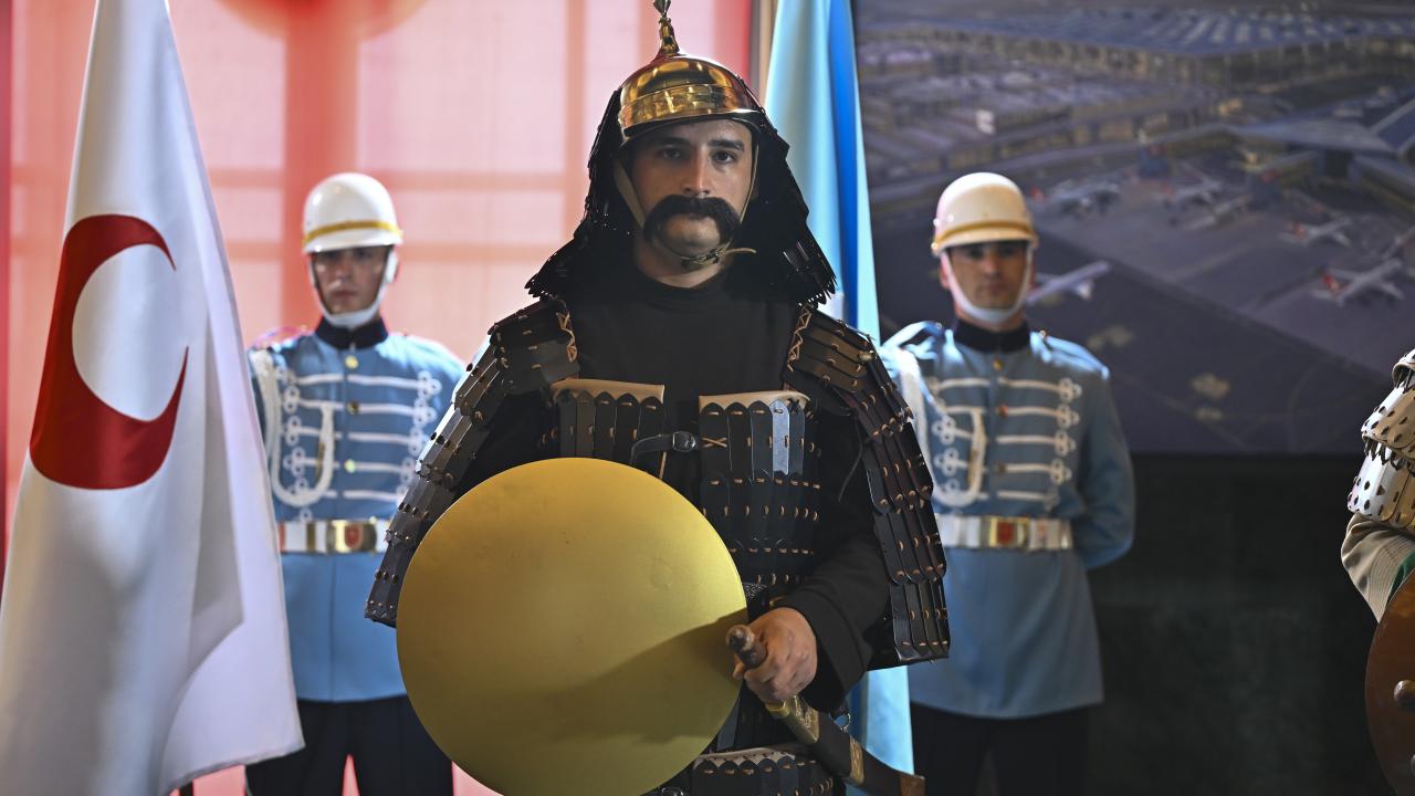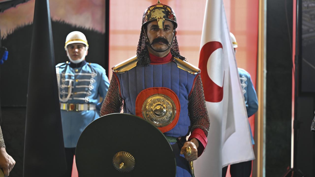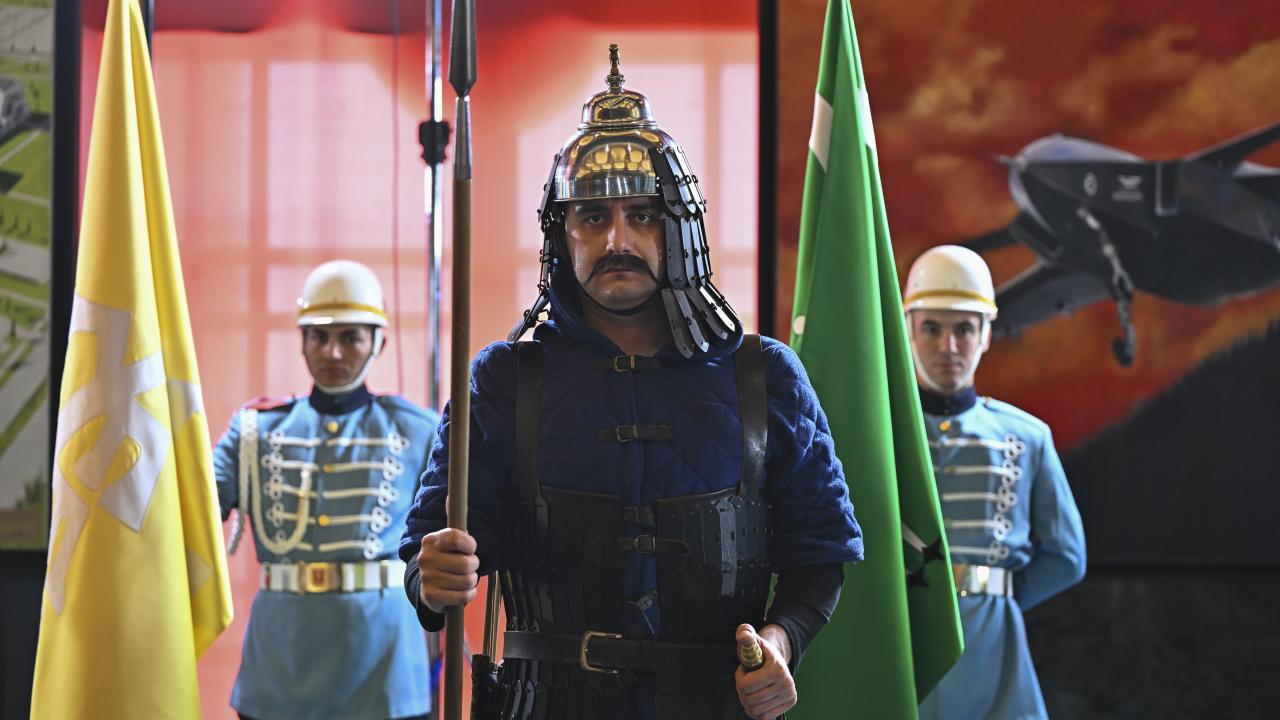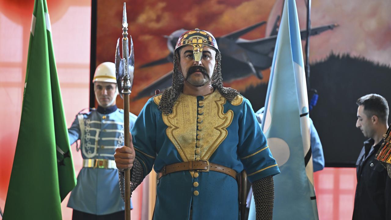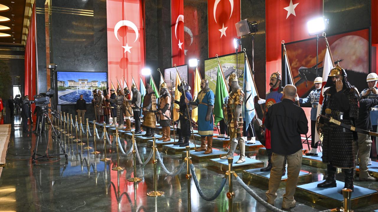 Cumhurbaşkanlığı Külliyesi'nde 29 Ekim Cumhuriyet Bayramı ve Cumhuriyet'in ilanının 100'üncü yıl dönümü dolayısıyla gerçekleştirilen tebrik töreninde, 16 Türk devletini temsil eden askerler de yer aldı.