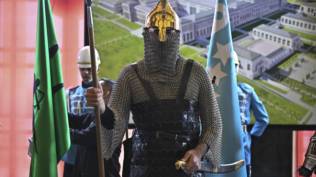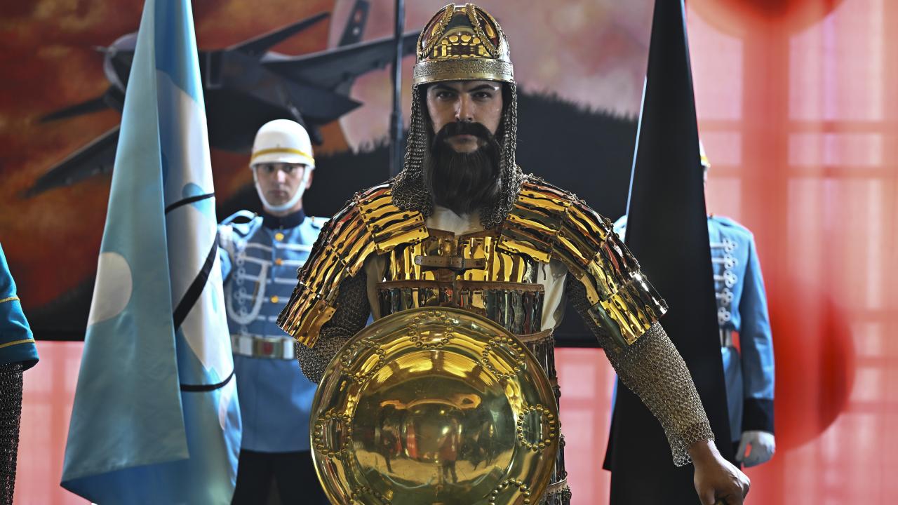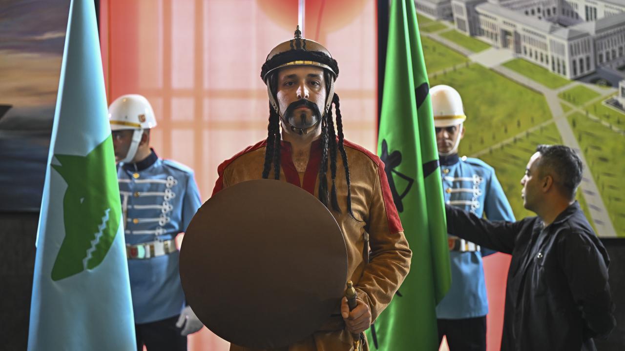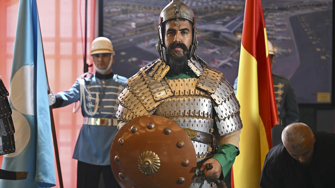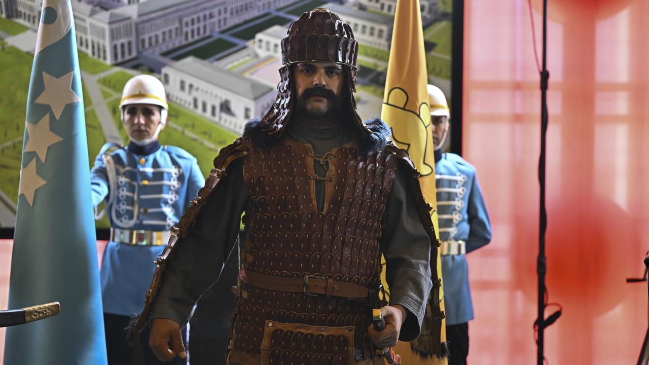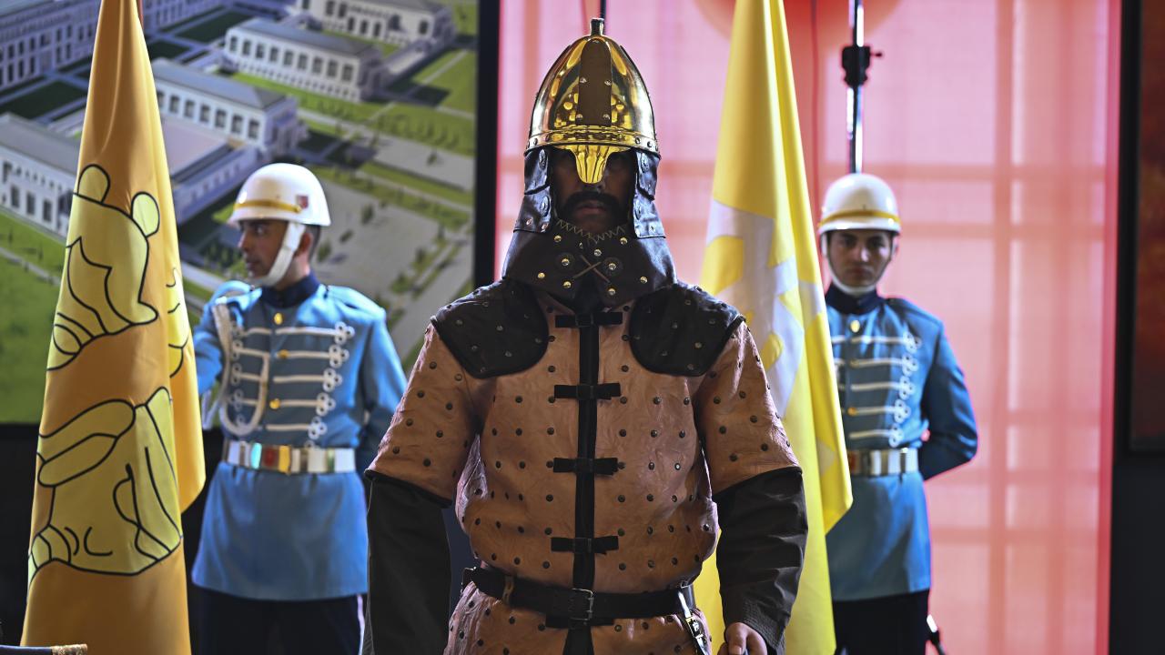 Cumhurbaşkanlığı Külliyesi'nde 29 Ekim Cumhuriyet Bayramı ve Cumhuriyet'in ilanının 100'üncü yıl dönümü dolayısıyla gerçekleştirilen tebrik töreninde, 16 Türk devletini temsil eden askerler de yer aldı.