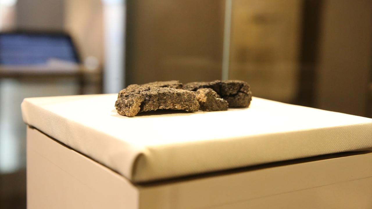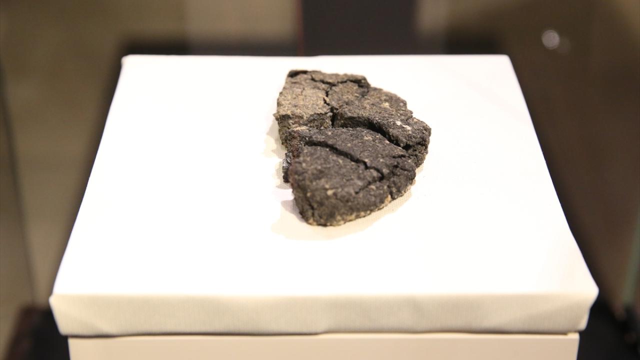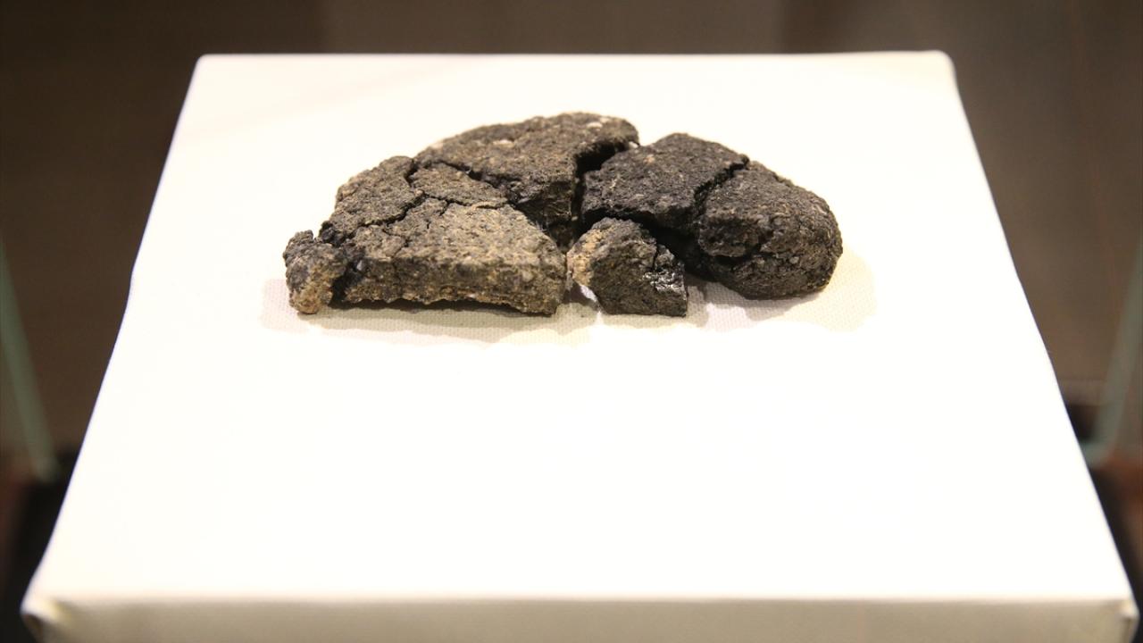 "Bu ekmek üzerinde çalışmalarımıza devam ettik. Gömülü haldeki evin eşik kısmına çok yakın bir yere konulmuş. 2,5 santimetre kalınlığında, 12,5 santimetre genişliği mevcut. Tüp halde bulunmuş. Formunu bildiğimiz, mayalanmış, pişirilmiş bu ilk örnek. Bunun başka bir örneği yok. Bu ekmek fırınlandıktan, pişirildikten sonra buraya özellikle konulmuş. Ekmeğin özellikle arka kısmındaki beyaz kalıntılara biz `fitolit` diyoruz. Fitolitler, bitki kalıntıları. Aslında yaprak kalıntıları. Ekmek mayalanırken mayalanma sürecinde zaman zaman yaprak üzerine bırakılıyor. Bunlara ait izler yer alıyor. Bunu da çalışacağız. Ekmeğin diğer analizlerini de yaptık."