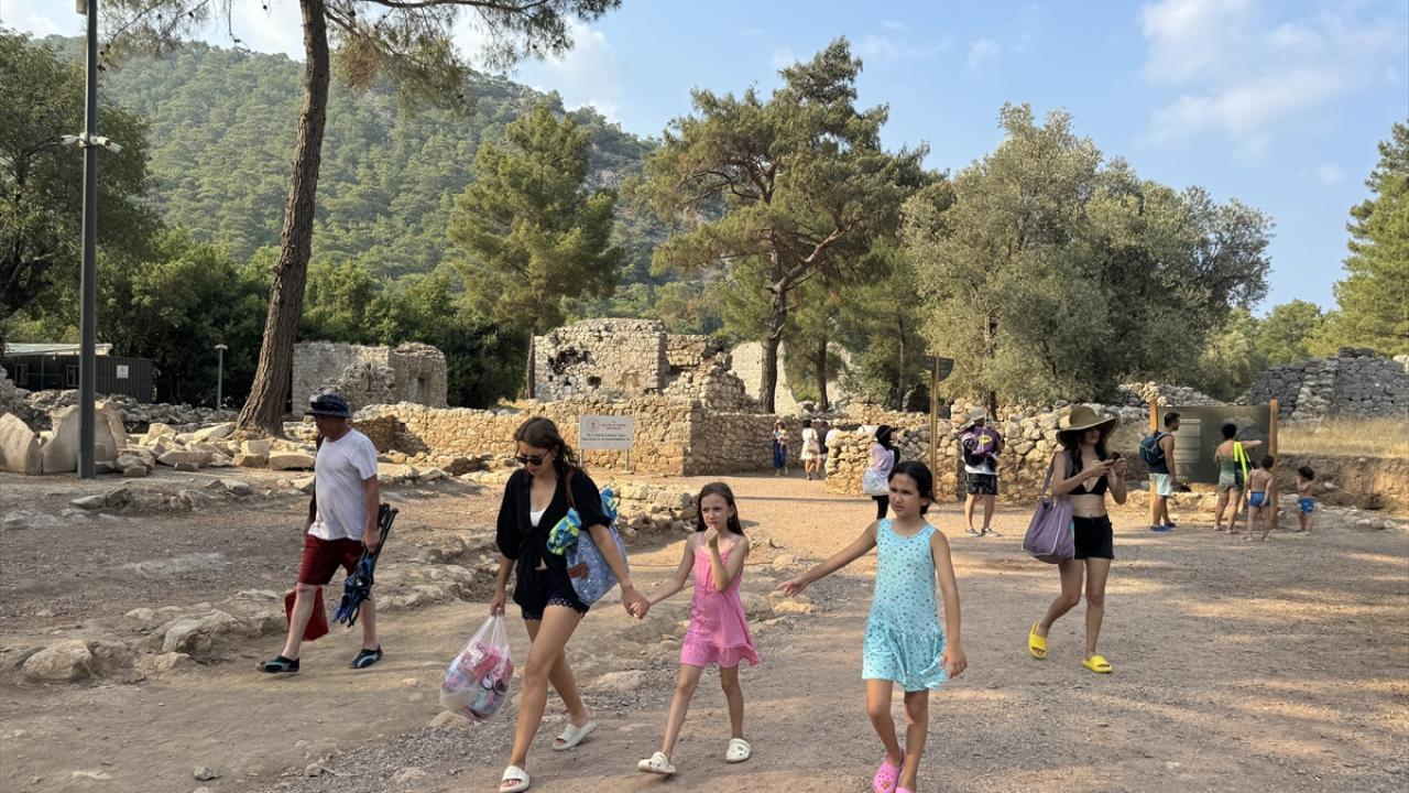 Antik kentin gizemli atmosferinde, tarihin izleri arasından geçerek plaja ulaşan yerli ve yabancı turistler, orman ve meyve bahçeleriyle çevrili ahşap bungalovlarda konaklayabiliyor.