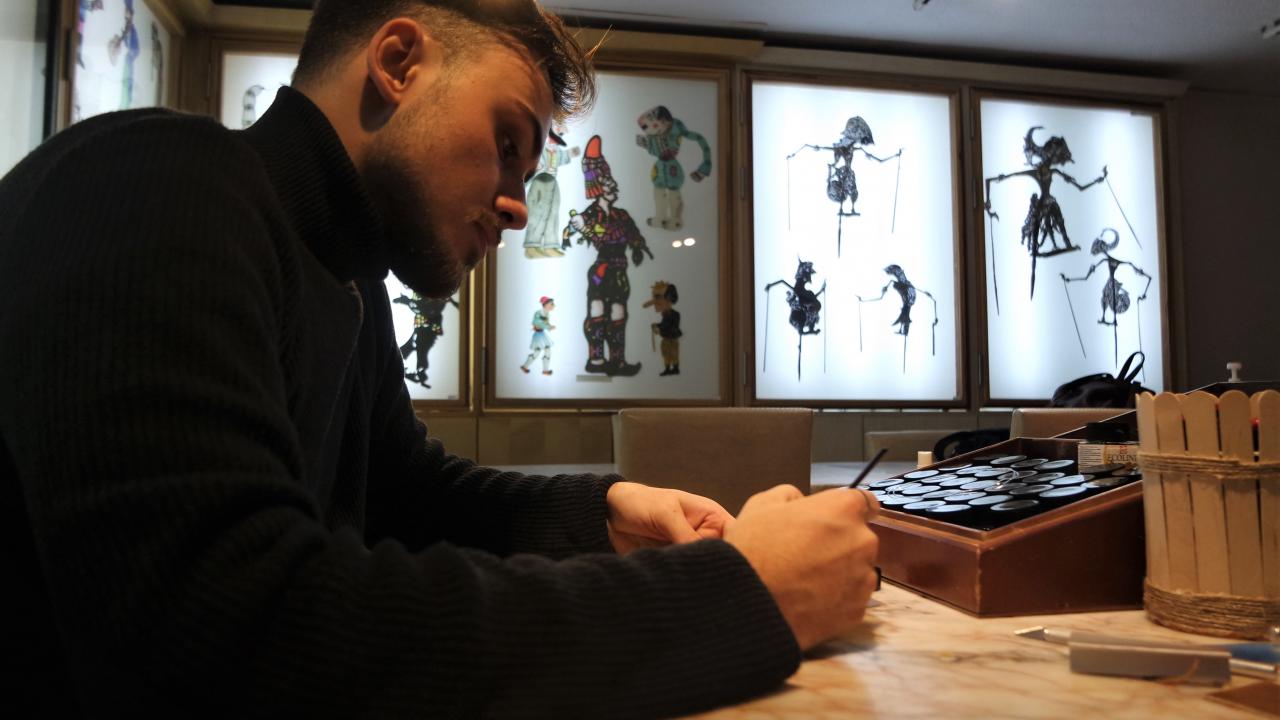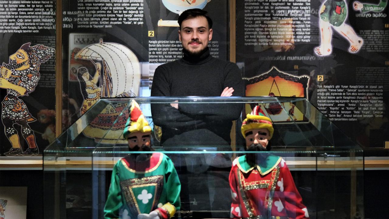 Bursa'da Karagöz sanatçılığı yapan ve UNESCO Somut Olmayan Kültürel Miras Taşıyıcısı unvanını alan 21 yaşındaki Hasan Mert Karakaş, çocukken Karagöz ve Hacivat'la tanıştığı müzede oyunlarını sahneliyor.