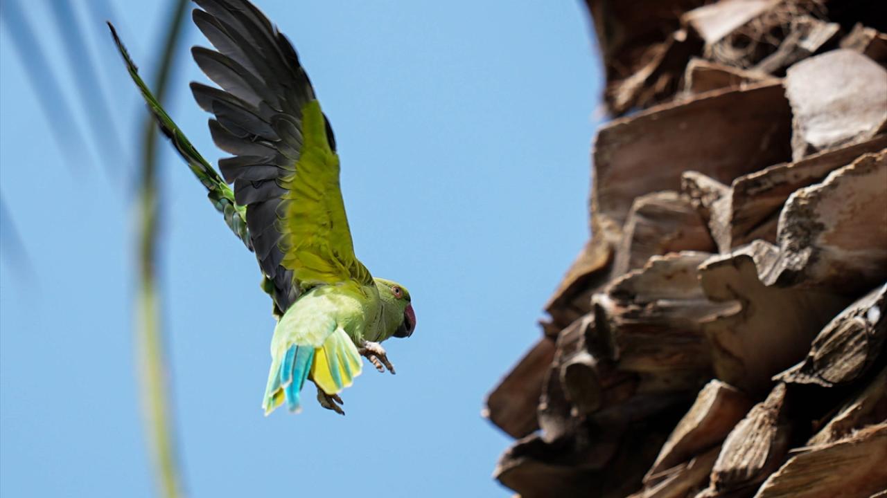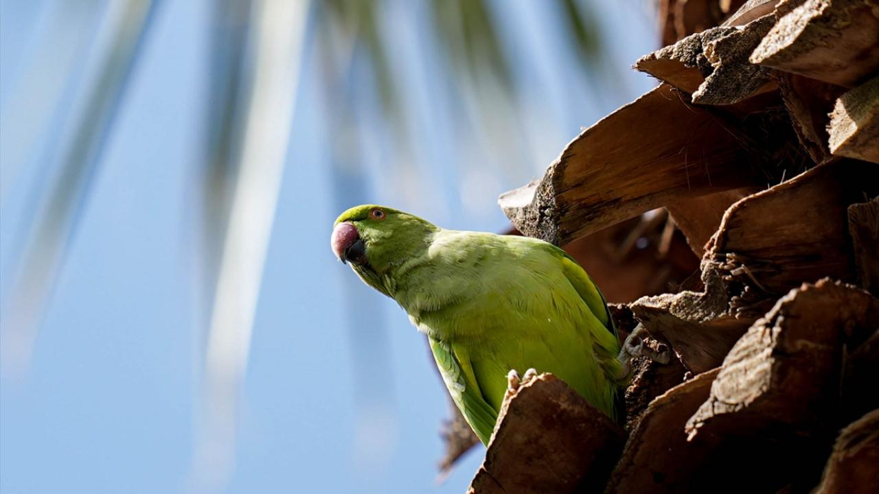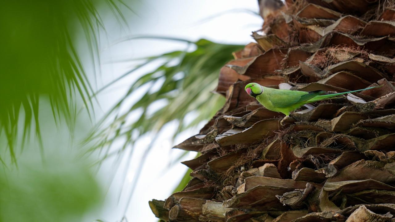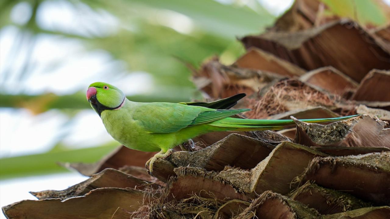 Türkiye dahil olmak üzere birçok ülkenin iklimine uyum sağlayan, anavatanları Afrika ile Güney Asya olan ve "halkalı boyunlu paraket" olarak da bilinen yeşil papağanlar, taklitçi özelliği, uzun kuyruk tüyleri ve kırmızı gagasıyla dikkati çekiyor.