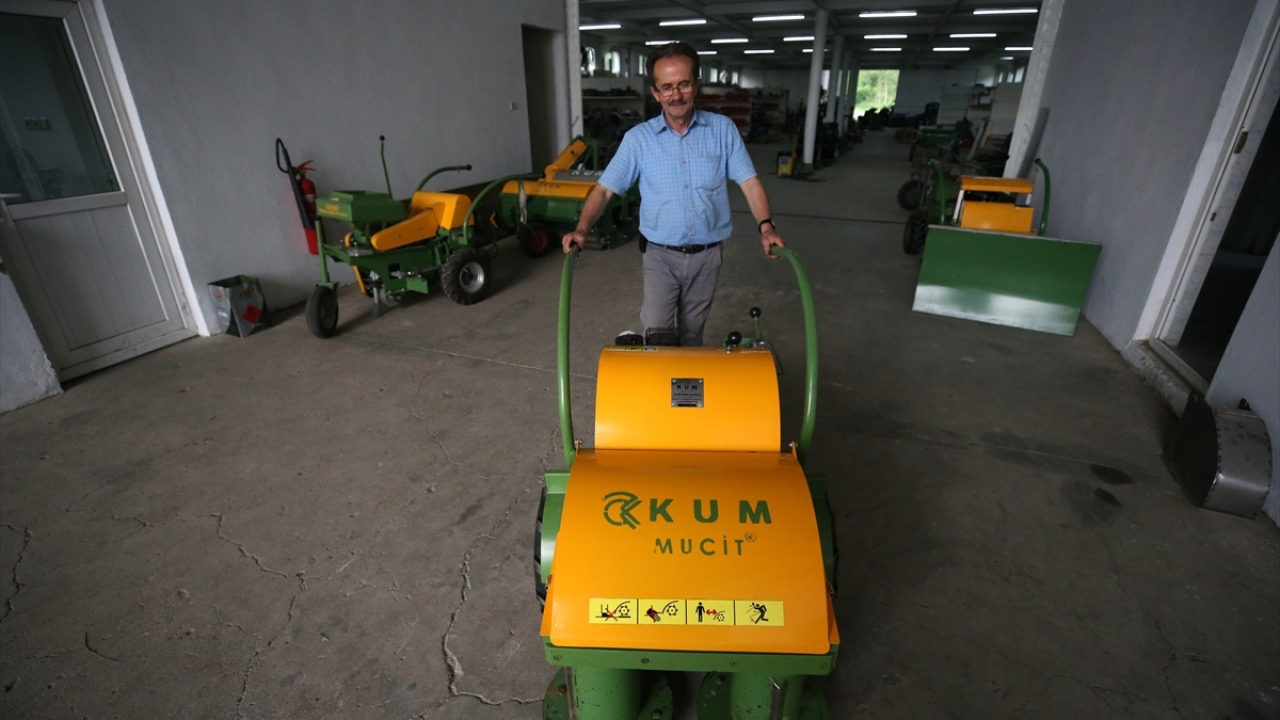 Düzce'nin Gölyaka ilçesinde yaşayan ve "Kum mucit" olarak tanınan 62 yaşındaki Hasan Kum, evinin önündeki atölyesinde tasarladığı, KOSGEB desteğiyle kurduğu fabrikada istihdam sağladığı 50 çalışanla ürettiği fındık toplama ve ot biçme makinelerini yurt dışına gönderiyor.