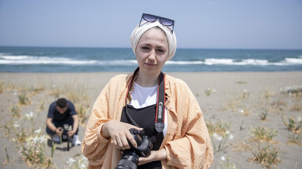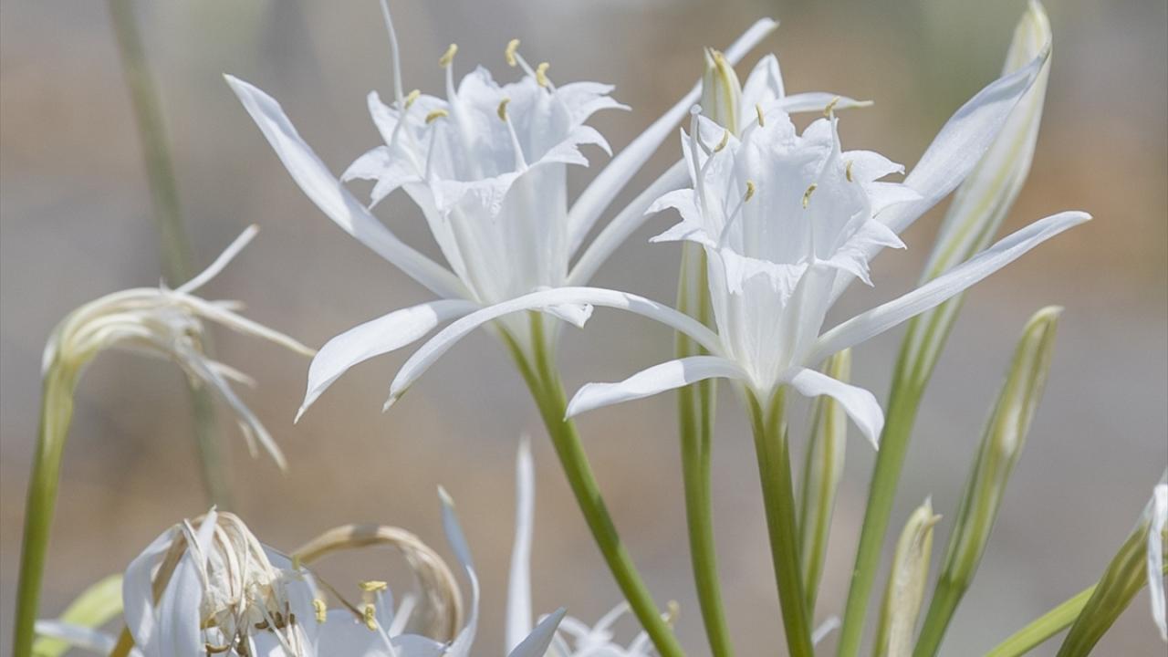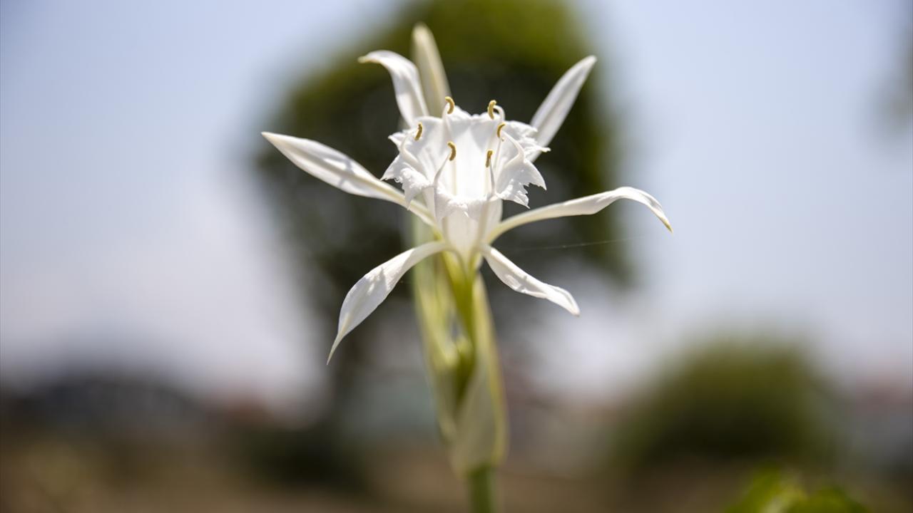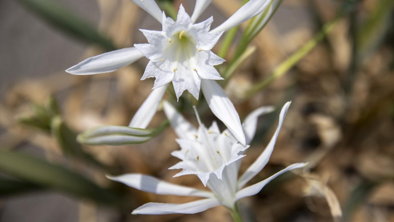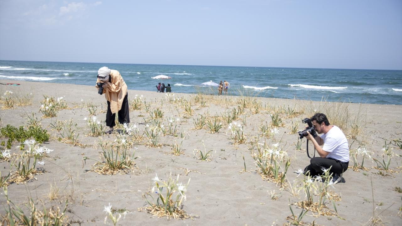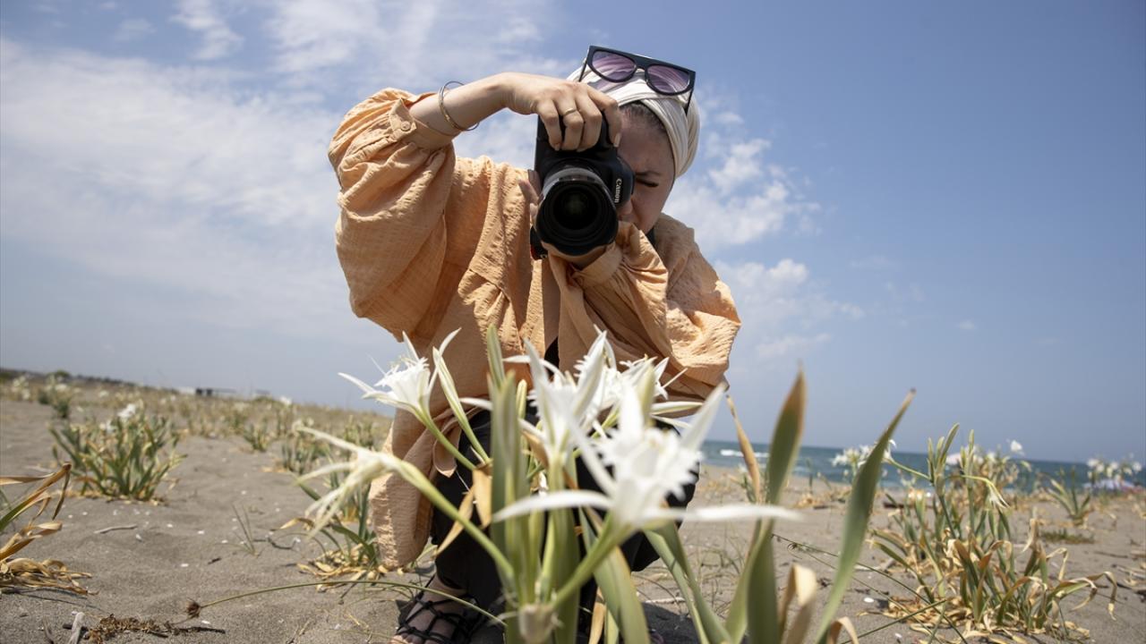 Beyaz renkli çiçekleri ve kokusuyla hayranlık uyandıran kum zambakları, tatilcilerin yanı sıra fotoğrafçıların da ilgisini çekiyor.