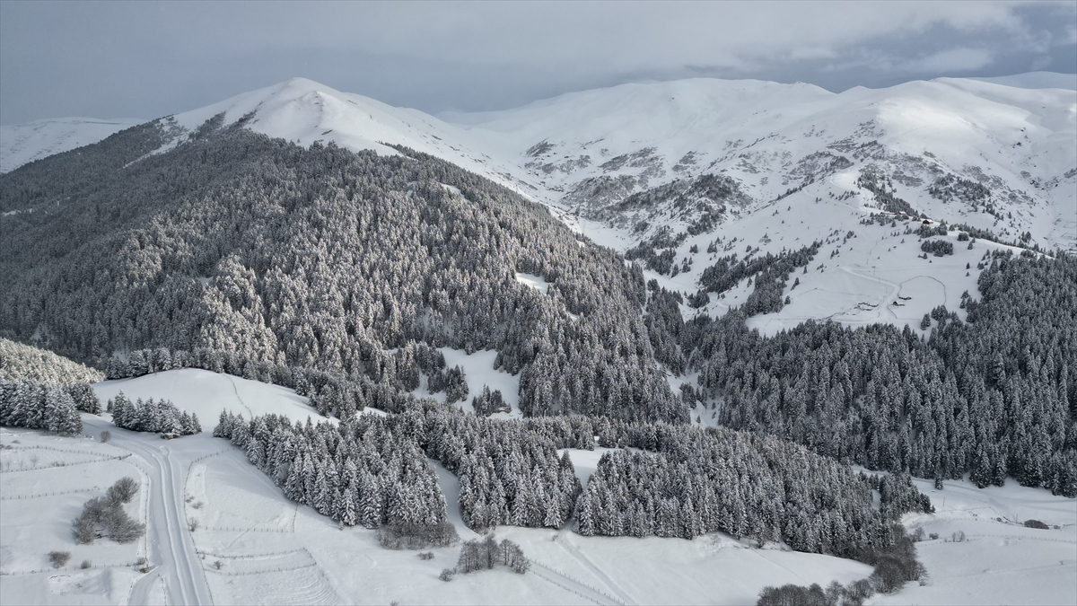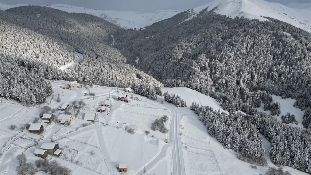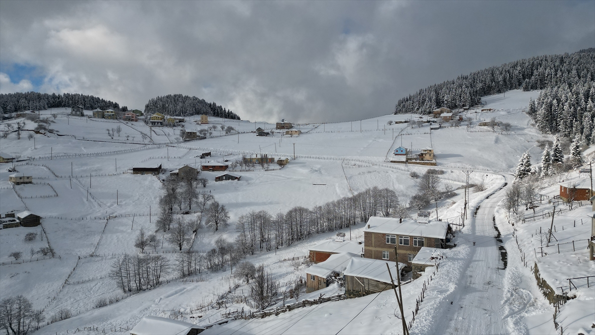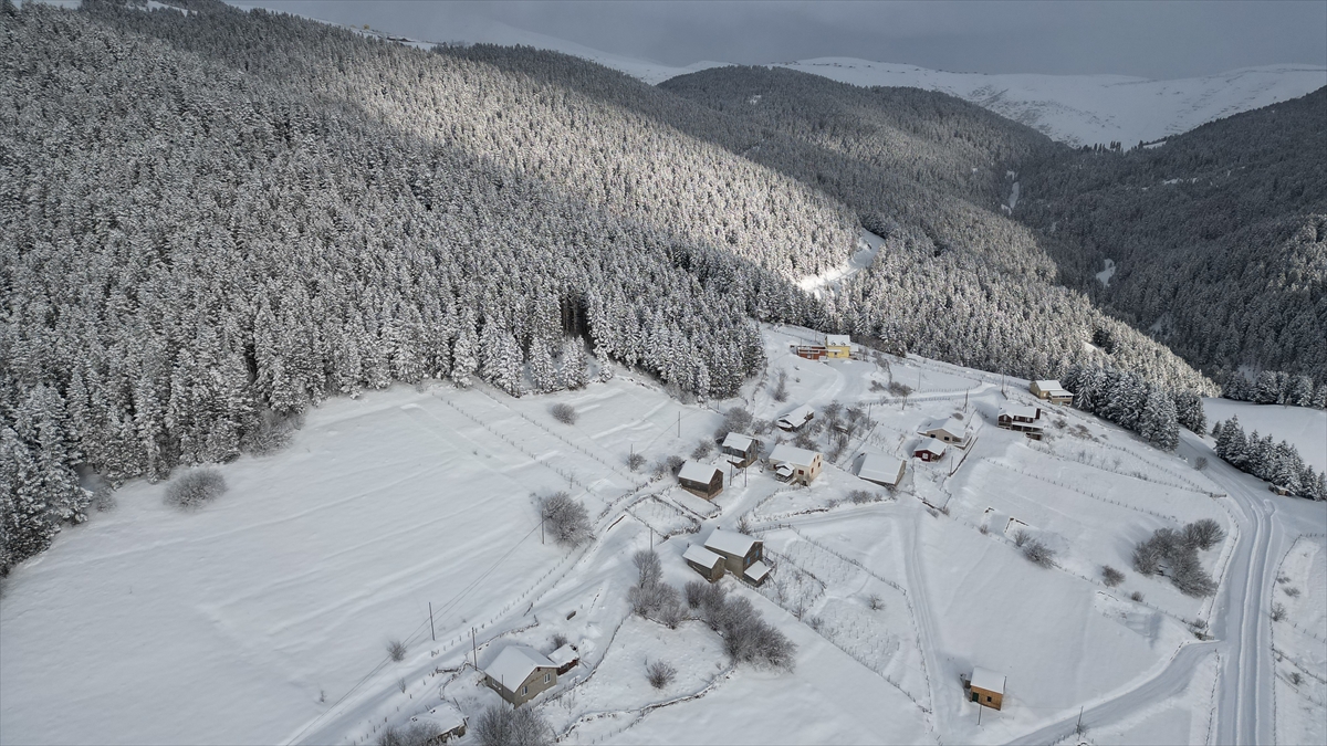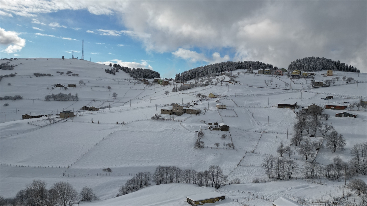 Giresun’un Dereli İlçesine bağlı ve özellikle yaz aylarında yerli ve yabancı turistlerin ziyaret ettiği Kümbet Yaylası beyaza bürünmüş doğasıyla havadan görüntülendi.