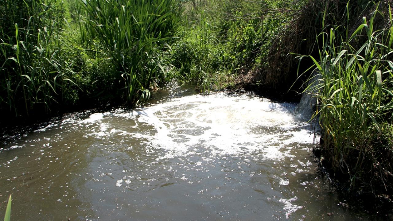 Arıtma tesisine kadar herhangi bir kirlilik gözlenmeyen derenin renginin, tesis yakınında borularla akıtılan kirli su nedeniyle siyaha döndüğü görülüyor.