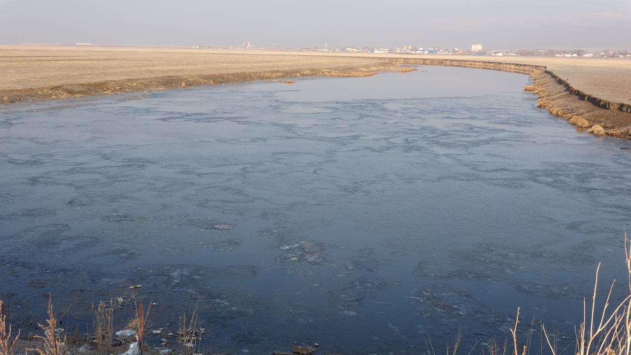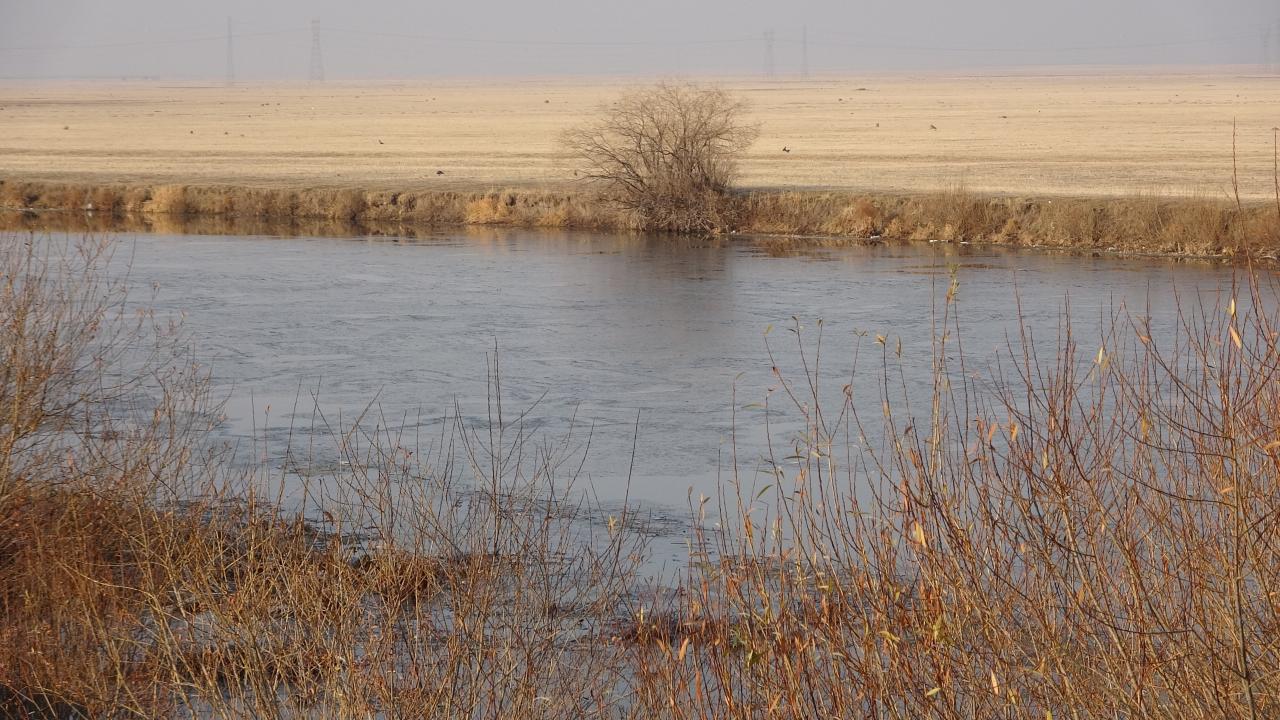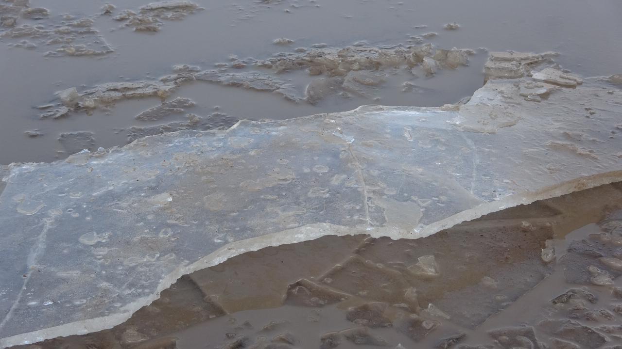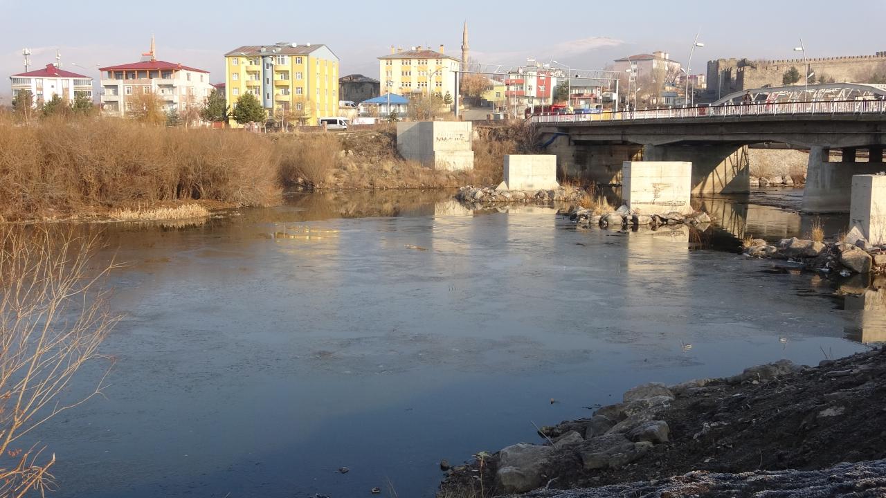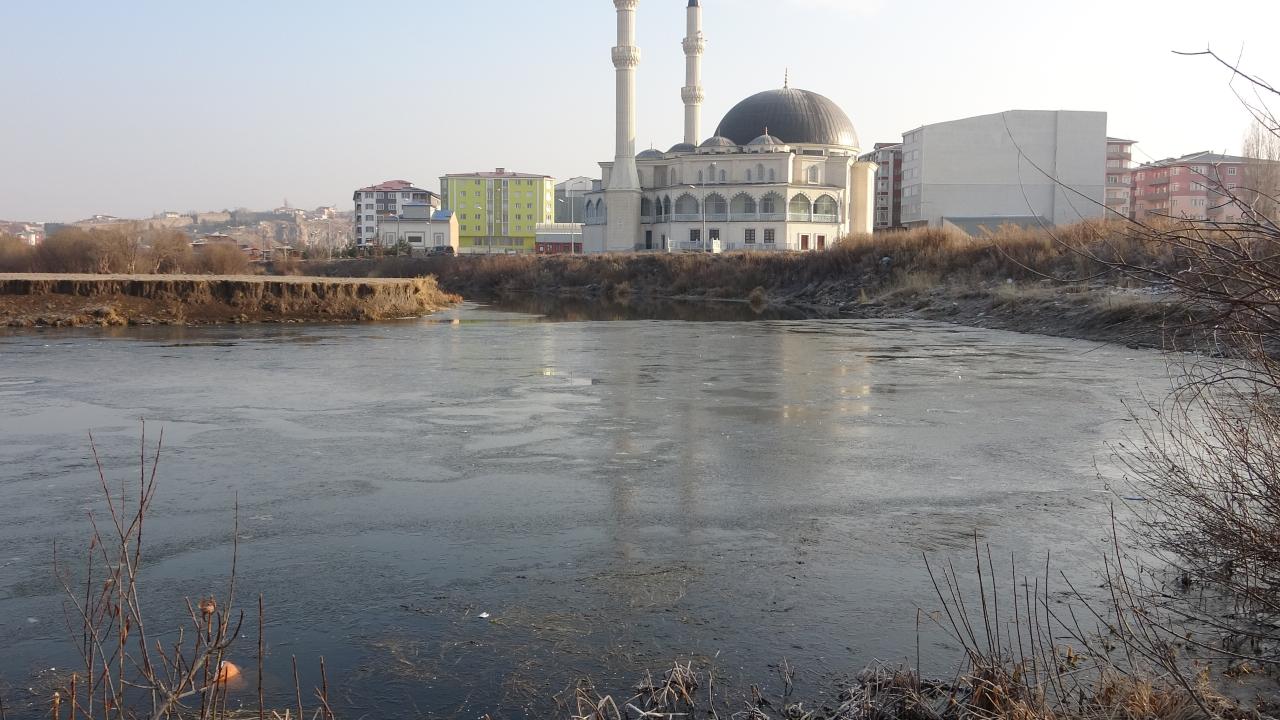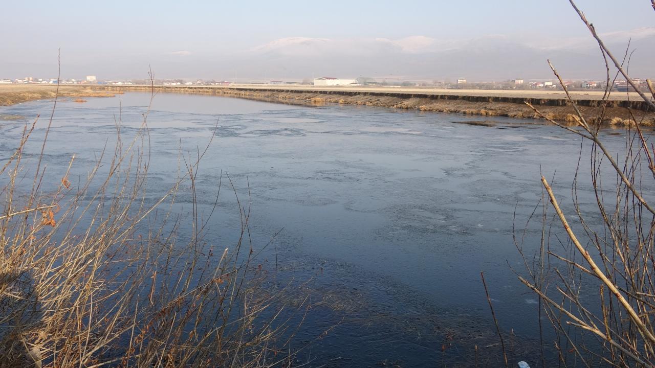 Kent merkezinden geçerek, Gürcistan ve Azerbaycan üzerinden Hazar Denizi`ne dökülen Kura Nehri`nin yüzeyi, buzla kaplandı.