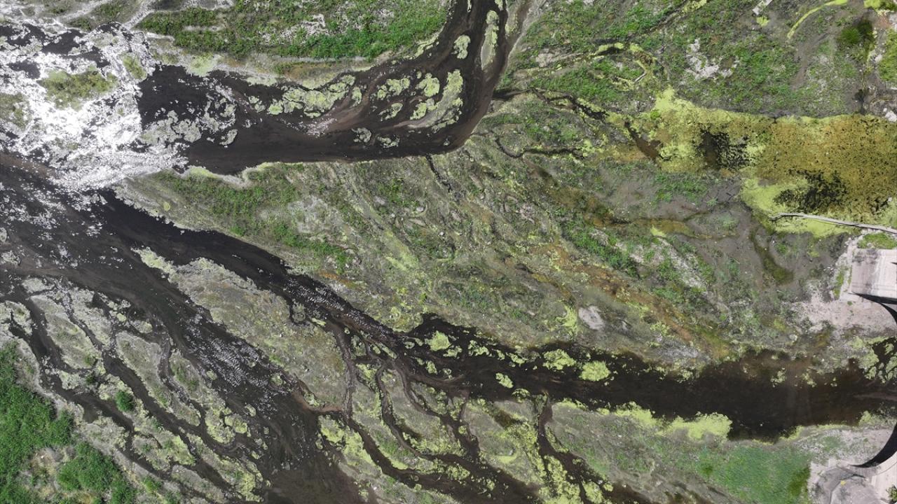 Nehir yatağının bazı bölümlerinde yosun ve yer yer balçık görülüyor.