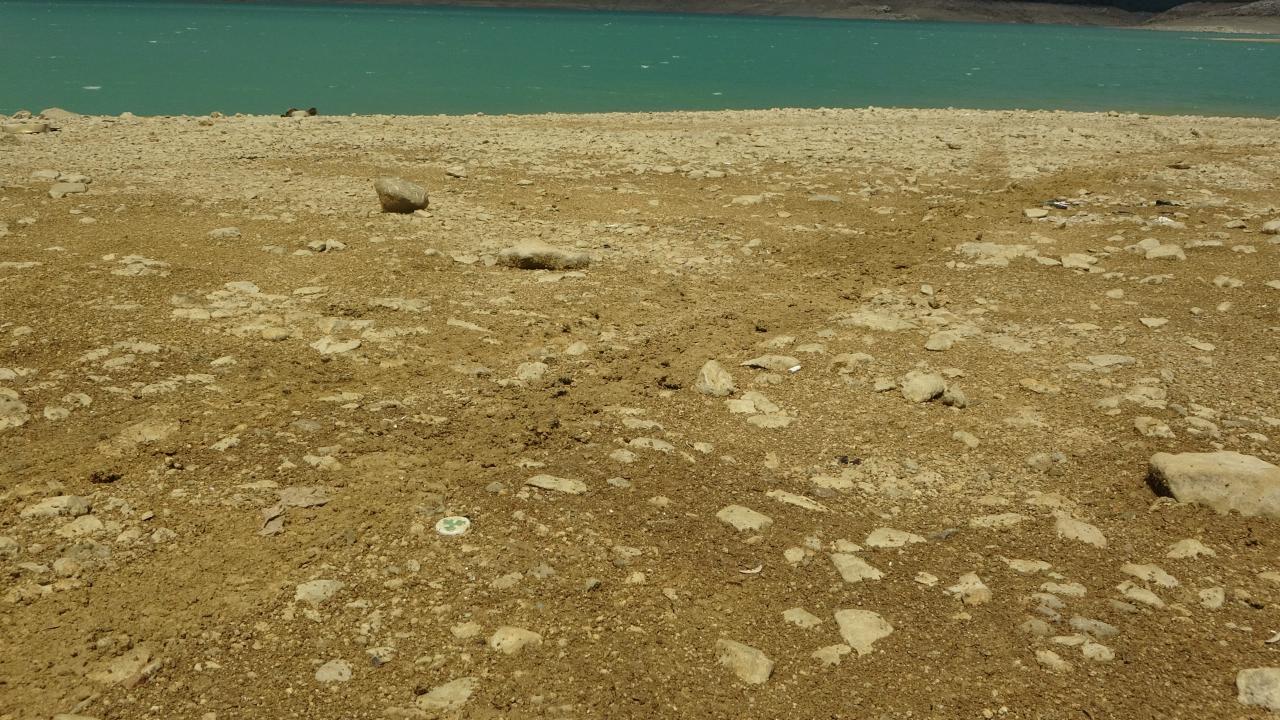 2022 Yılından bu yana kuraklık nedeni ile su seviyesinde ciddi düşüş yaşanan gölette bu yıl yaşanan Basra sıcakları ve Afrika sıcakları ile su seviyesi yüzde 23’e gerileyerek kara parçaları ortaya çıktı.