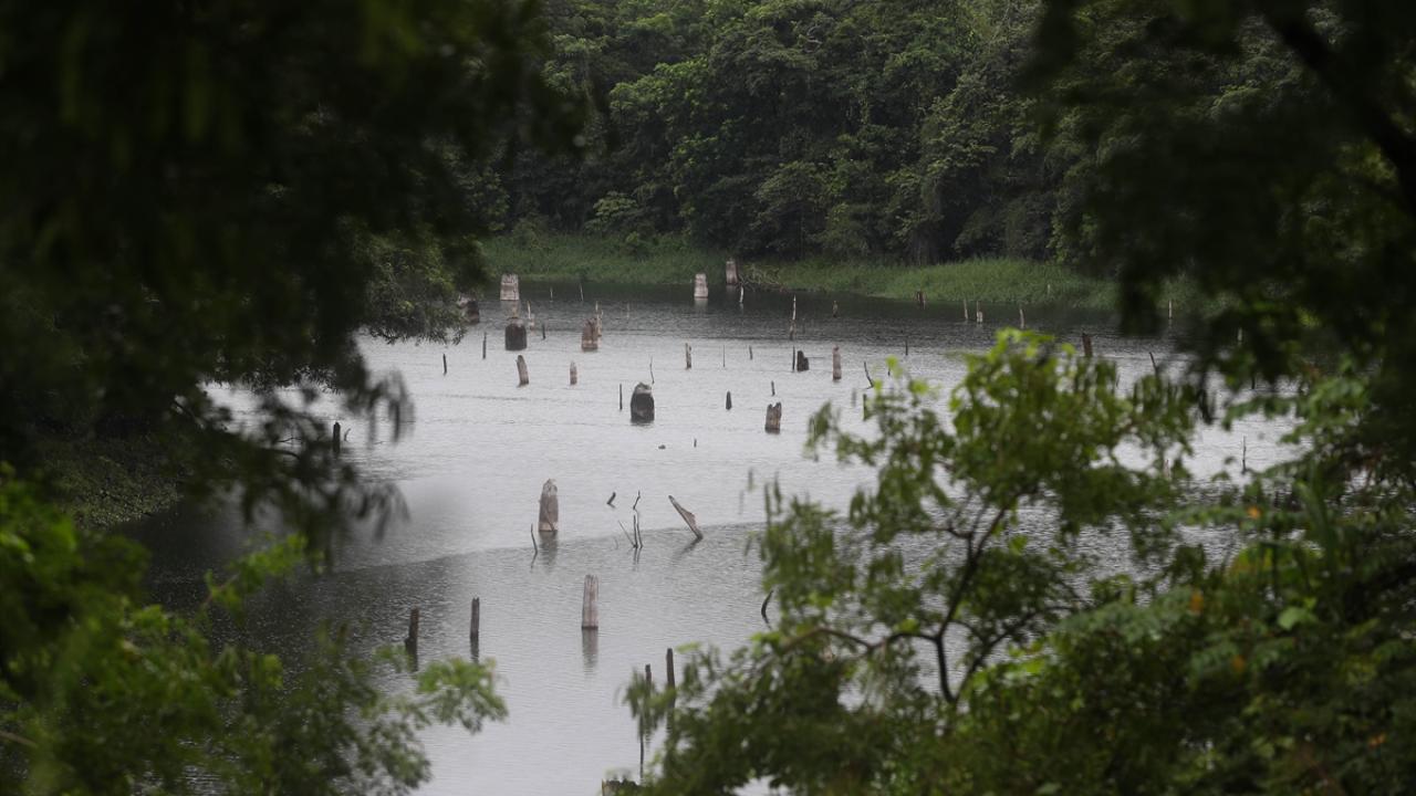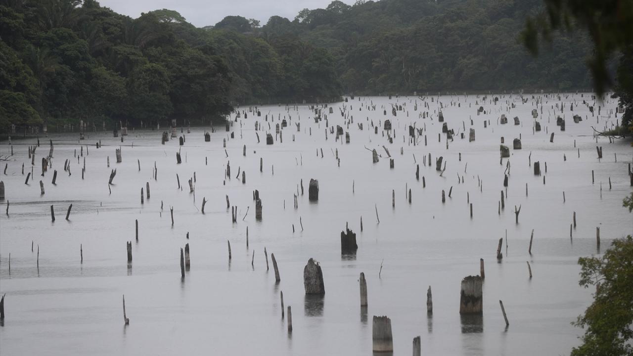 Panama`nın Colon kentinde bulunan Gatun gölünde azalmış olan su, dikkat çekti.