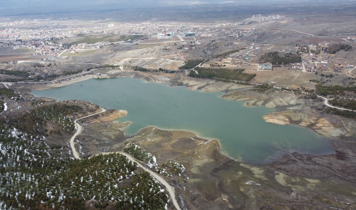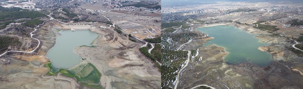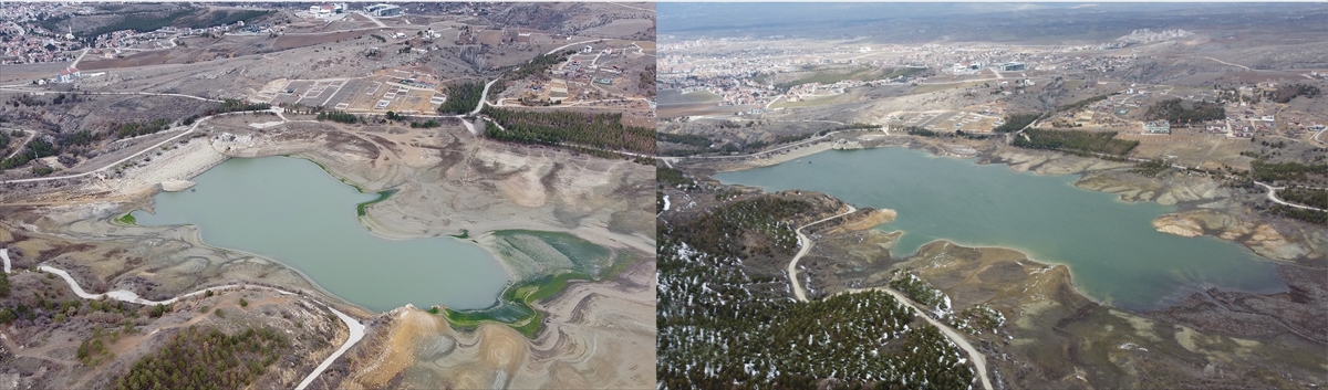 Barajın geçen yıl kuraklıktan etkilenmiş hali ile bu yıl kar sularıyla rezervinin artmış hali, dron ile görüntülendi.