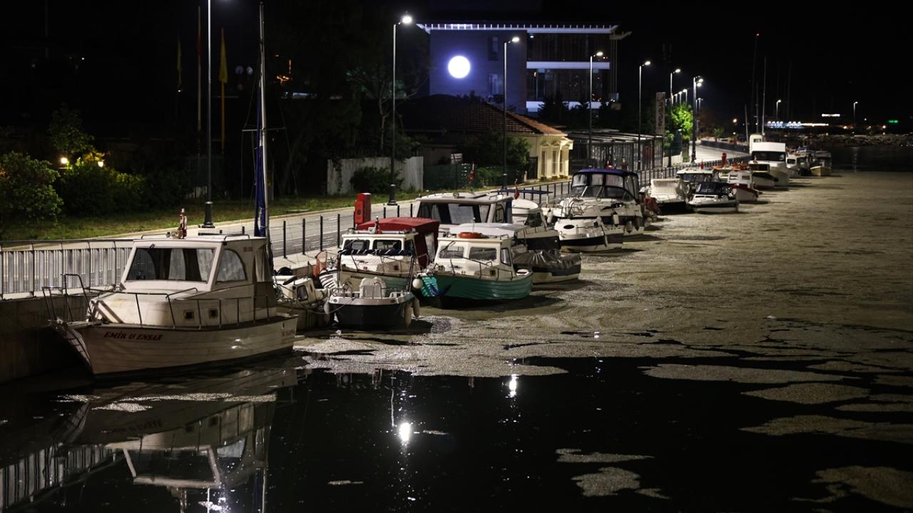 Teknelerin bulunduğu kısmı kaplayan müsilaj nedeniyle beyaz tabaka oluşurken balıkçılar, bu durumun her sene görüldüğünü ancak bu yıl yoğunluğun daha fazla olduğunu söyledi.