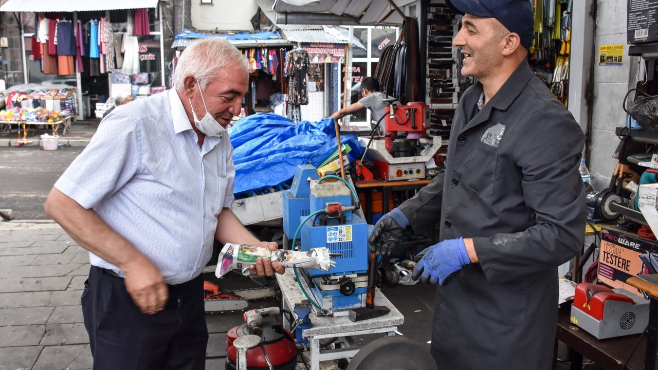 Kars'ta Kurban Bayramı dolayısıyla kurbanlık kesiminde kullanılacak malzemelerin bakımını yapan Suat Baydağ, talepleri yetiştirmek için bugünlerde yoğun mesai yapıyor.