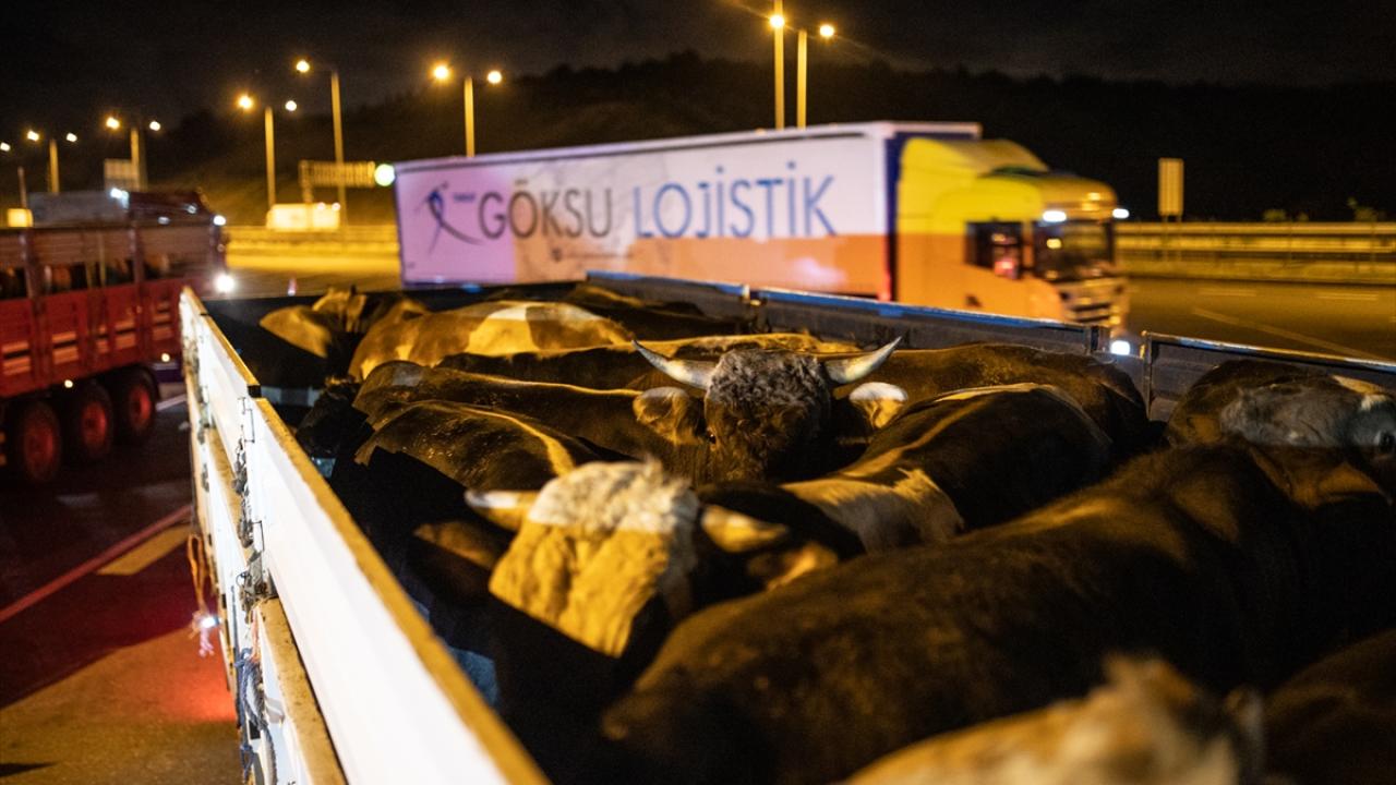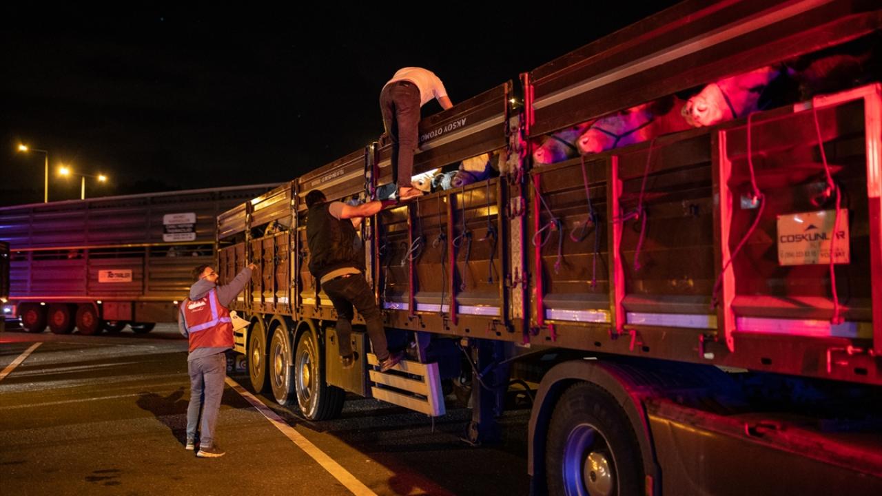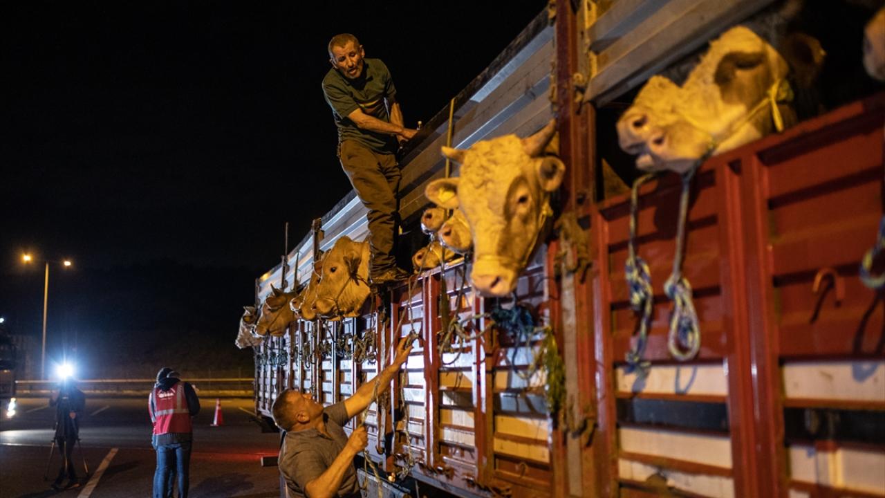 Kente getirilen kurbanlıklar, Kuzey Marmara Otoyolu Beykoz Riva kavşağında oluşturulan denetim noktasında ekipler tarafından denetlendi.