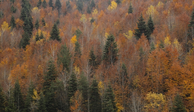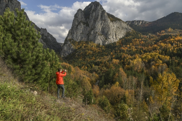 Kastamonu'nun Küre ilçesine bağlı Ersizlerdere köyündeki ormanlar, doğa ve fotoğraf tutkunlarını bölgeye çekiyor. Sonbaharın renk cümbüşü eşliğinde doğa gezileri yapan macera tutkunları, yaklaşık bin 500 rakımlı İpsine tepesine çıkarak Küre Dağları'nın eşsiz manzarasında doğanın tadını çıkartıyor.