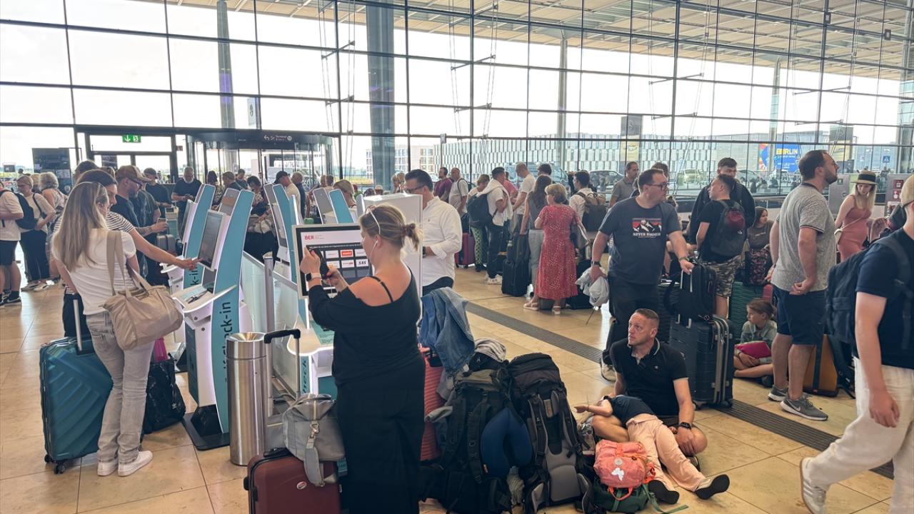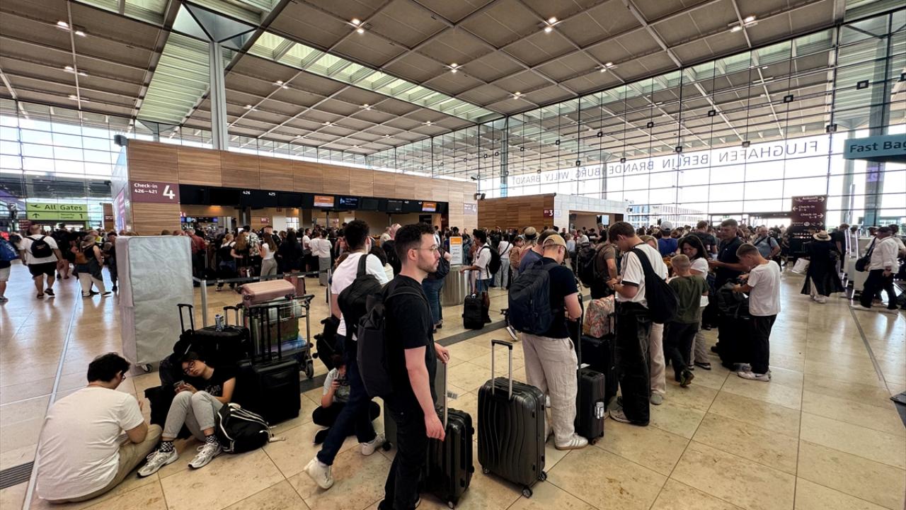 Almanya`nın başkenti Berlin`deki Berlin Brandenburg Havalimanında da seferlerde aksamalar yaşandı.