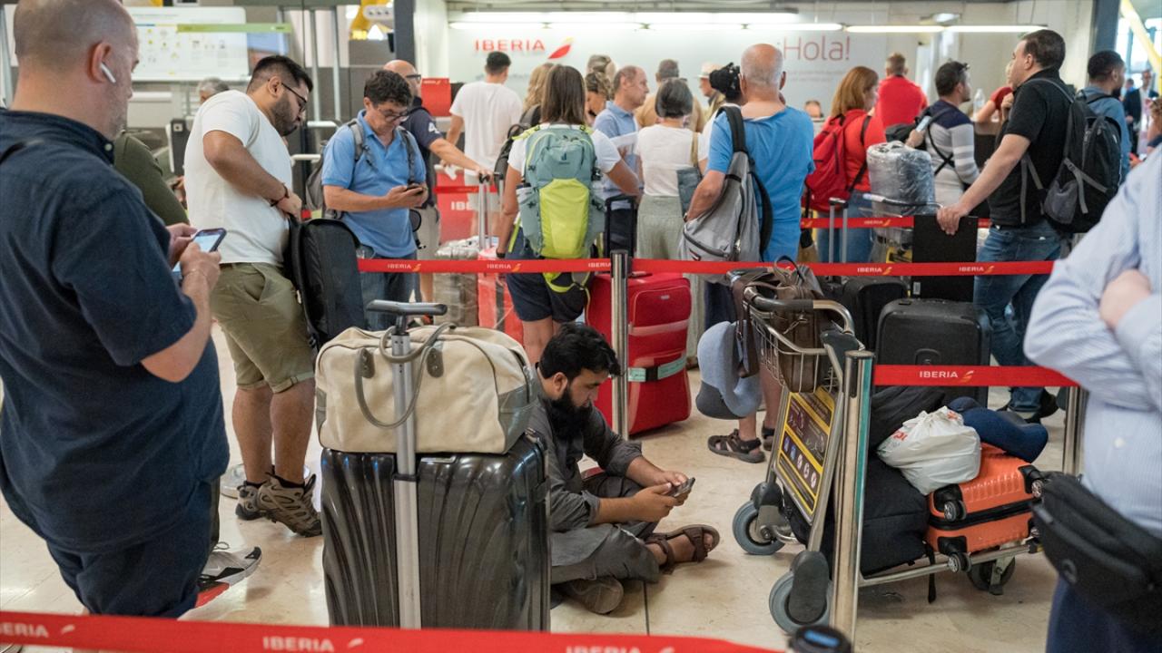 Madrid`de bulunan Madrid Barajas Uluslararası Havalimanı`nda sistemlerde yaşanan aksaklıklar nedeniyle yoğunluk meydana geldi.