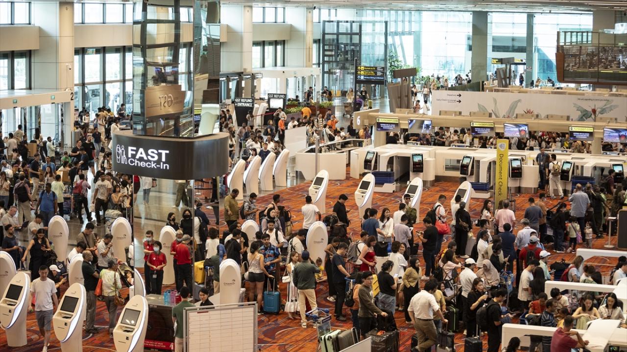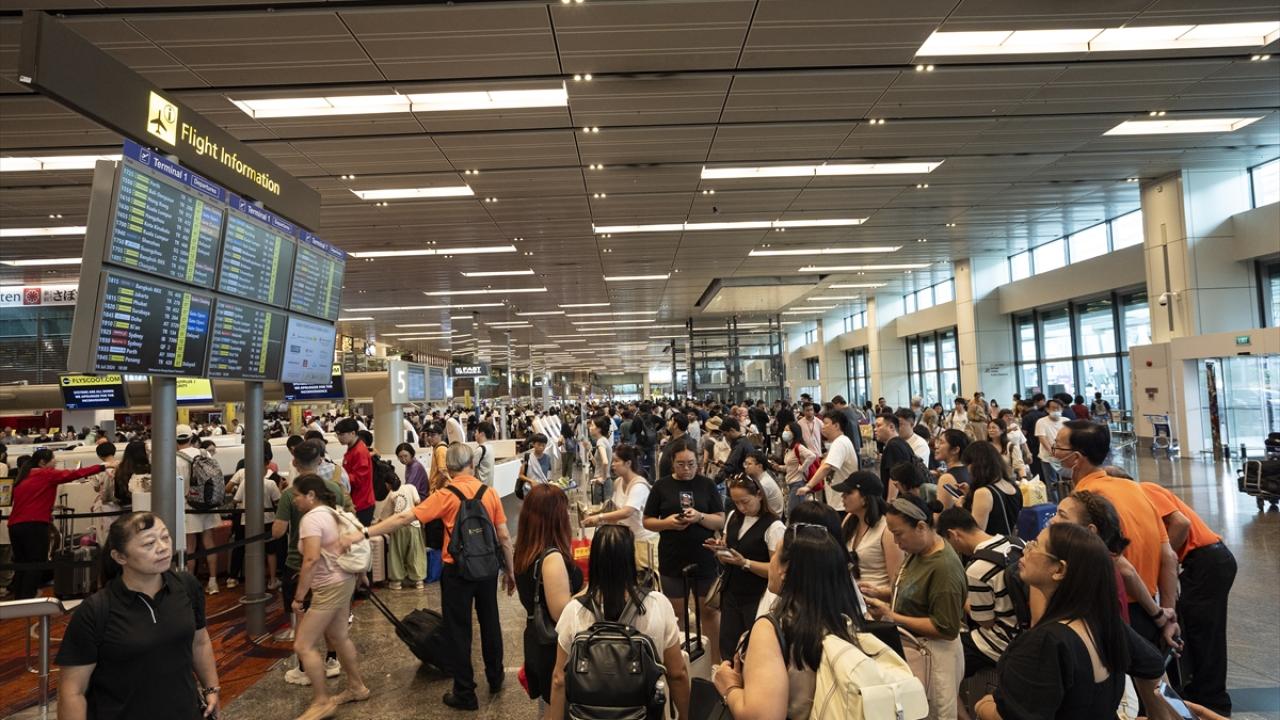 Singapur`da bulunan Changi Havalimanı`nda sistemlerde yaşanan aksaklıklar nedeniyle yoğunluk meydana geldi.