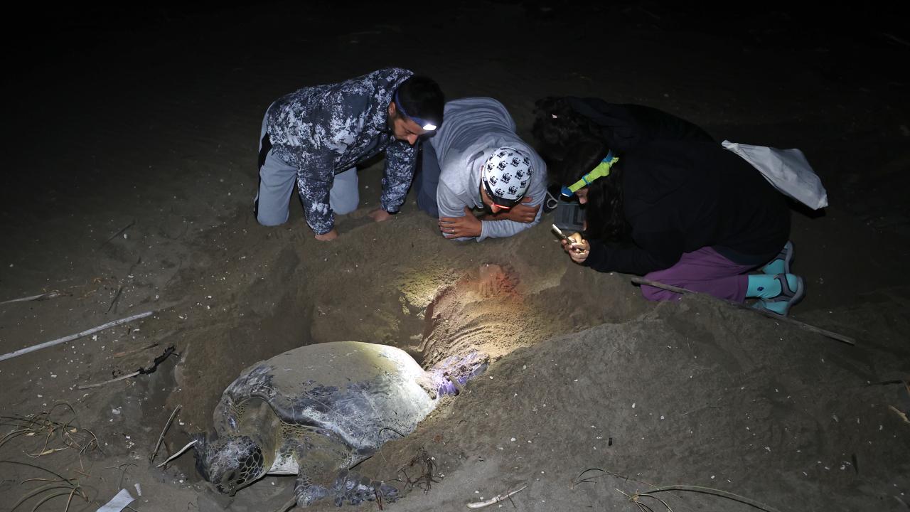 "Şahit olduğumuz gibi kaplumbağa yumurtalarını bıraktı. Yaklaşık 45-50 günlük bir kuluçka sürecinden sonra yavrular buradan çıkıp denize doğru gidecek. Ortalama 20-25 yılda erginleşen dişi deniz kaplumbağaları tekrar aynı kumsala gelip yumurtalarını bırakacaklar."