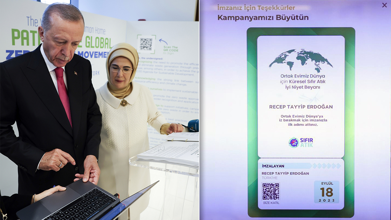 Cumhurbaşkanı Erdoğan, New York’ta gerçekleştirilen BM 78. Genel Kurulu kapsamında, eşi Emine Erdoğan'ın önderlik ettiği Küresel Sıfır Atık İyi Niyet Beyanına ilk imzayı attı.