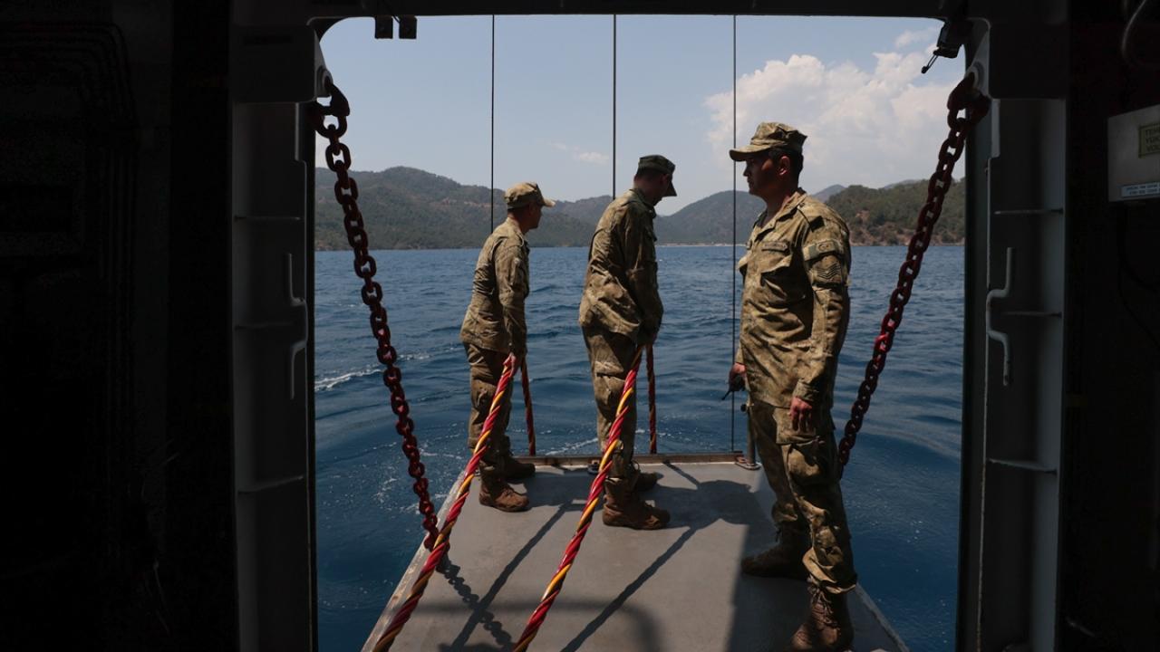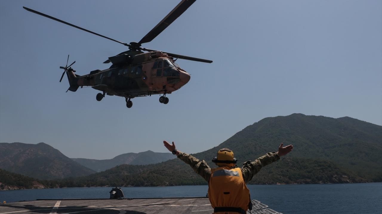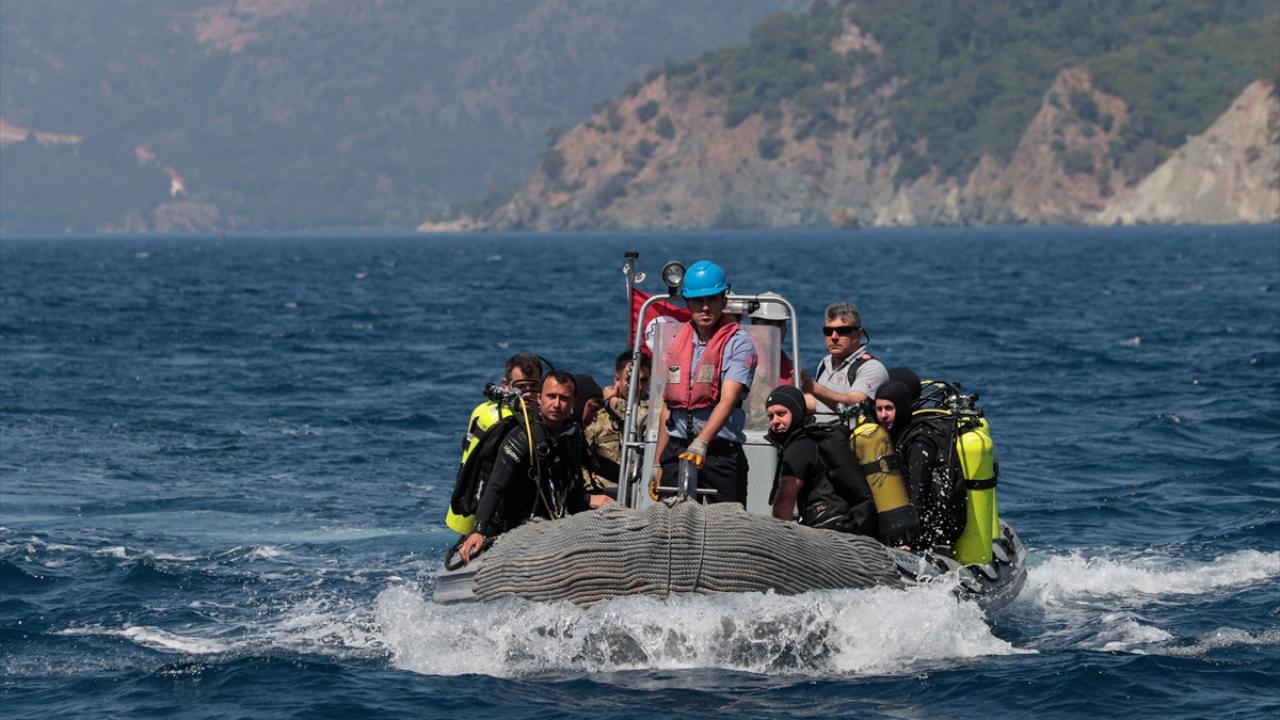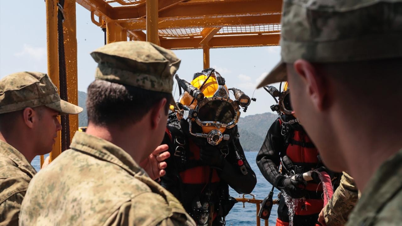 Marmaris Aksaz açıklarındaki tatbikatta, senaryo gereği satha çıkma kabiliyetini yitirmiş denizaltı gemisine yönelik kurtarma faaliyeti yapıldı.