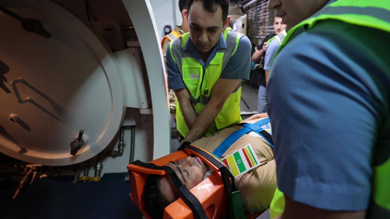 Senaryo gereği gemiye getirilen kazazedeler tıbbi tasnifi yapılarak ilgili tedavi alanlarına yönlendirildi. Burada kurtarılanlara tıbbi müdahale, tetkik ve muayeneleri Denizaltı Tahliye ve Kurtarma Yardım Timi tarafından yapıldı.