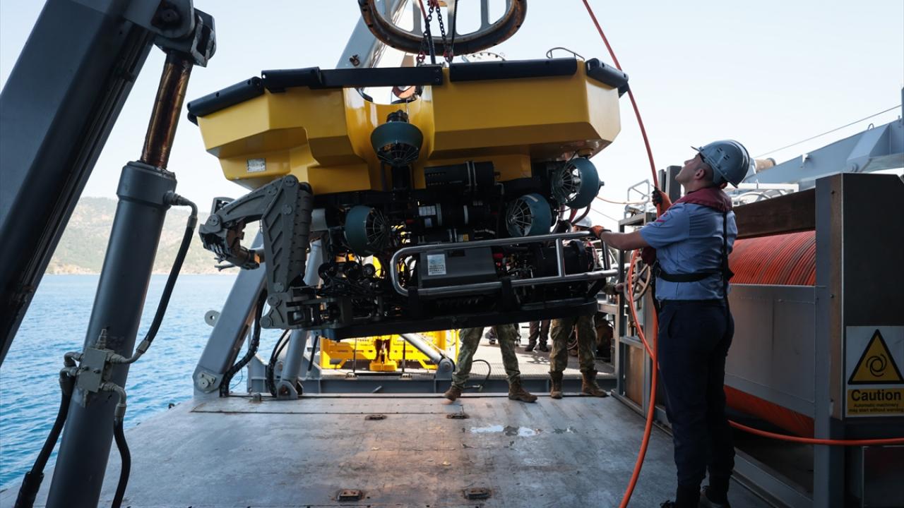 TCG Alemdar denizaltı kurtarma gemisinden Uzaktan Kumandalı Sualtı Aracı (ROV) ile 32 metre derinlikteki denizaltıya sörvey (inceleme ve gözlemleme) faaliyeti icra edildi.