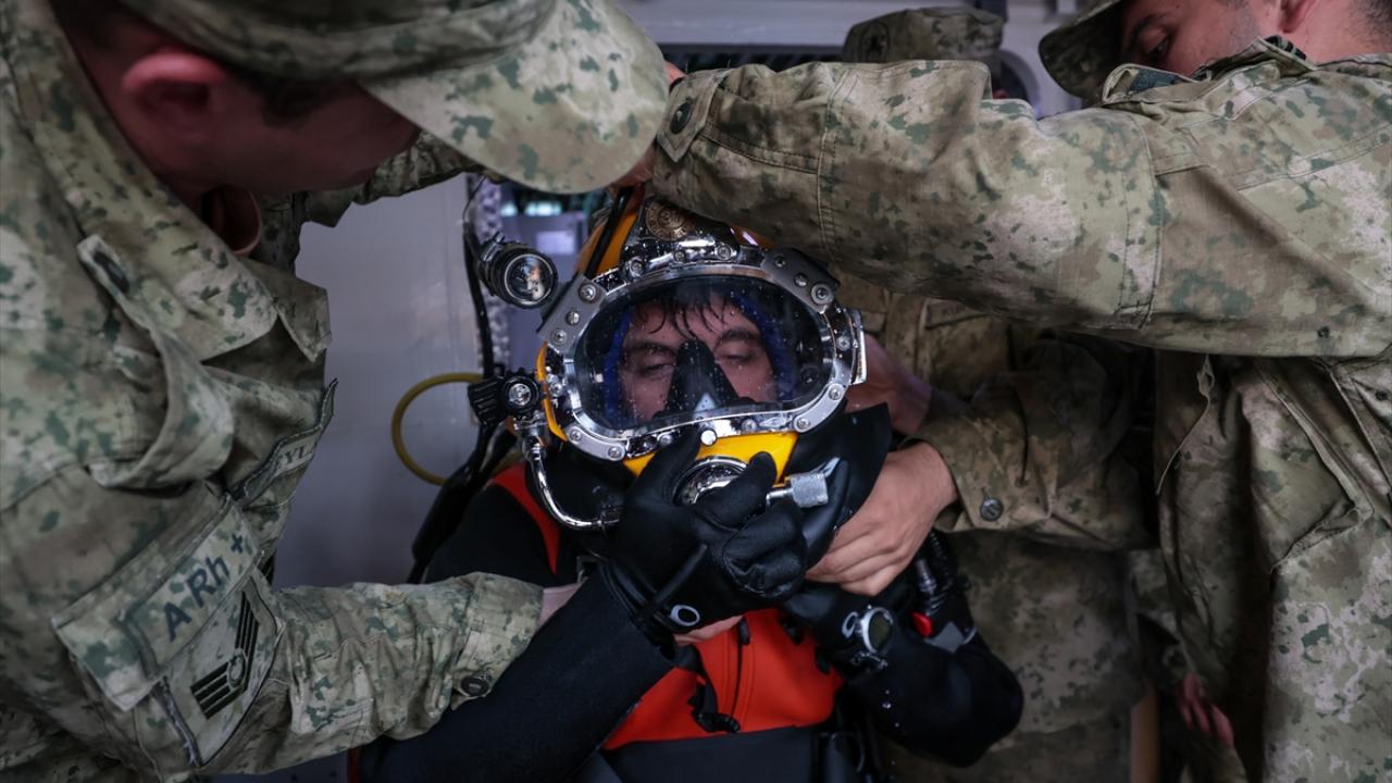 Denizaltı tahliye eğitimleri kapsamında 2 kazazede serbest çıkış faaliyeti gerçekleştirerek su yüzüne çıktı.