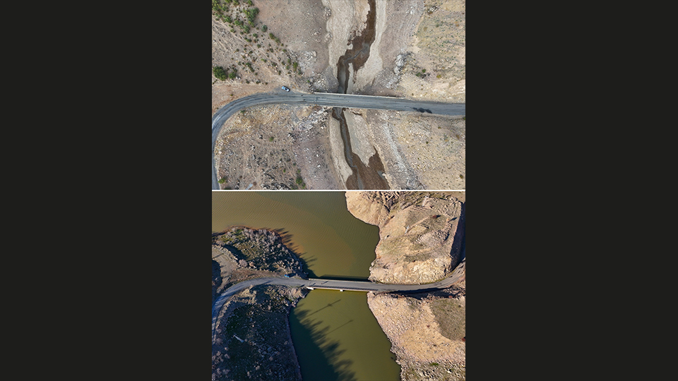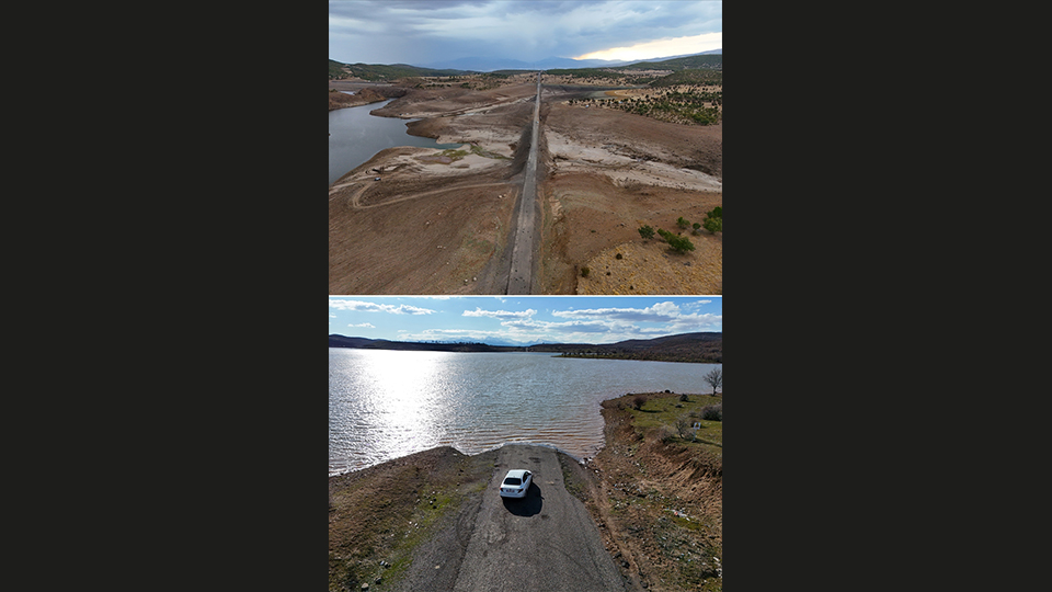 Baraj havzasının Ekim 2025`teki kurak hali ile bu yılki su seviyesinin ulaştığı noktayı görsellerle karşılaştıran Anadolu Ajansı (AA) ekibi, bölgedeki martıları da kayıt altına aldı.