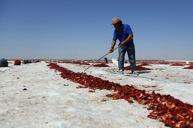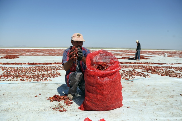 Konya, Niğde, Adana, Aksaray ve Mersin'den toplanan yaş domatesler, Konya'nın Ereğli ilçesinde kurutularak, başta İtalya olmak üzere Almanya, Yunanistan gibi Avrupa ülkelerinin mutfaklarına lezzet katıyor. Şanlıurfa Mevsimlik Tarım İşçileri Derneği Başkanı Suphi Curun (fotoğrafta), AA muhabirine açıklamalarda bulundu.