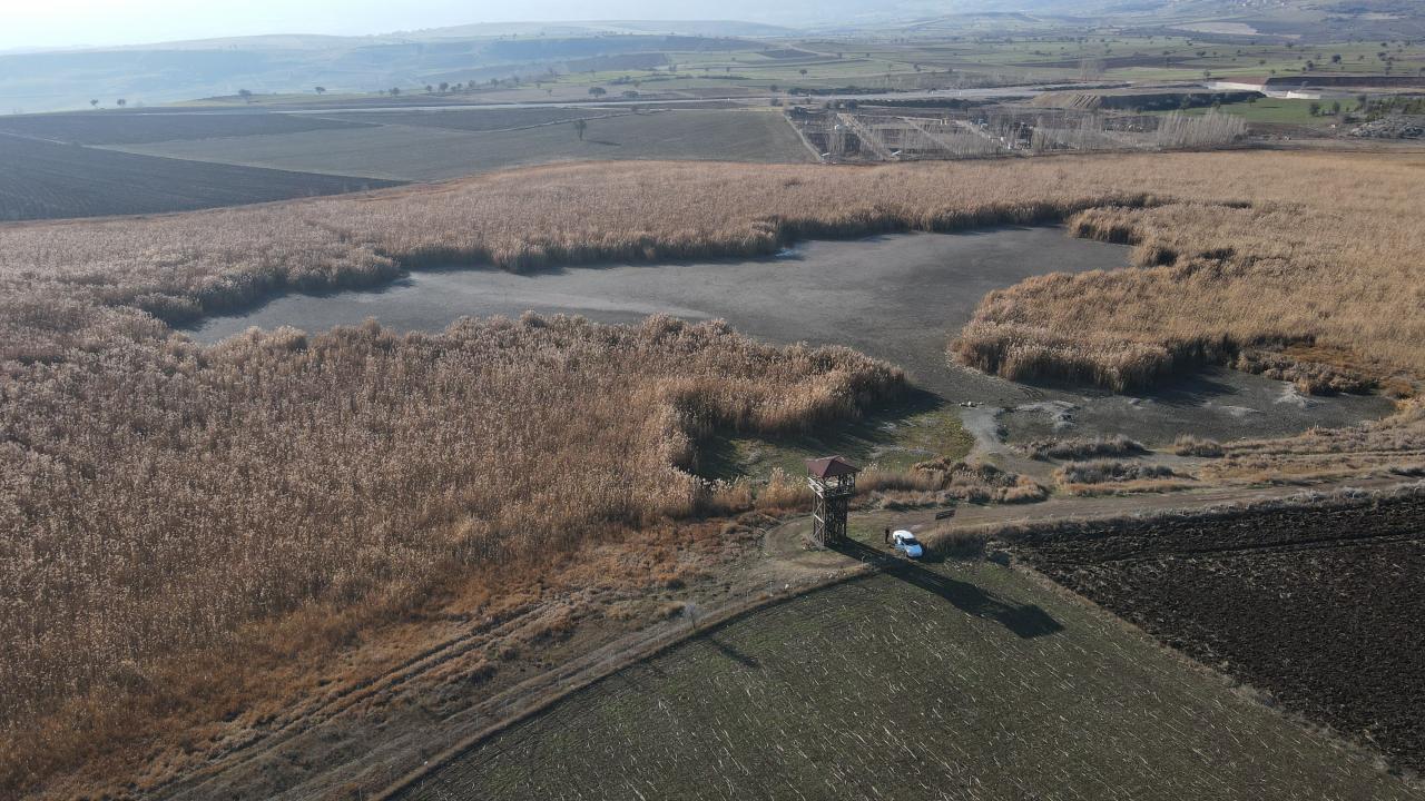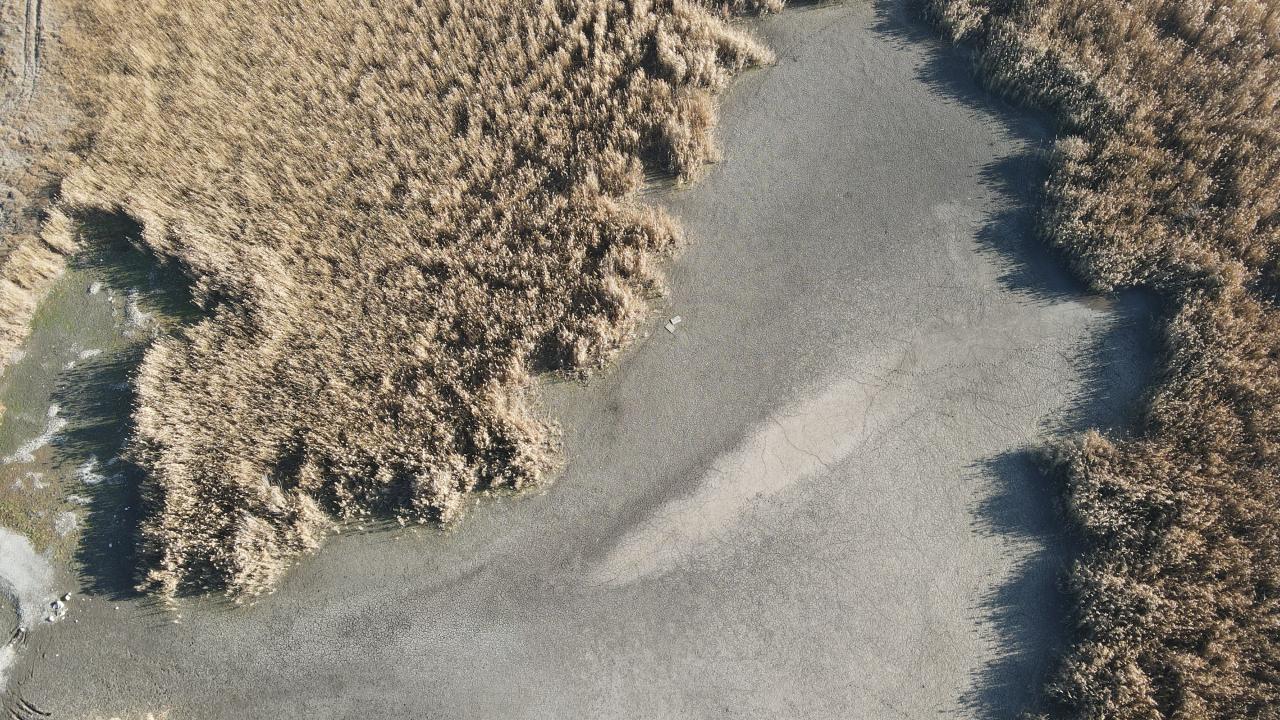 Kuruyan kuş cenneti dronla havadan görüntülendi.
