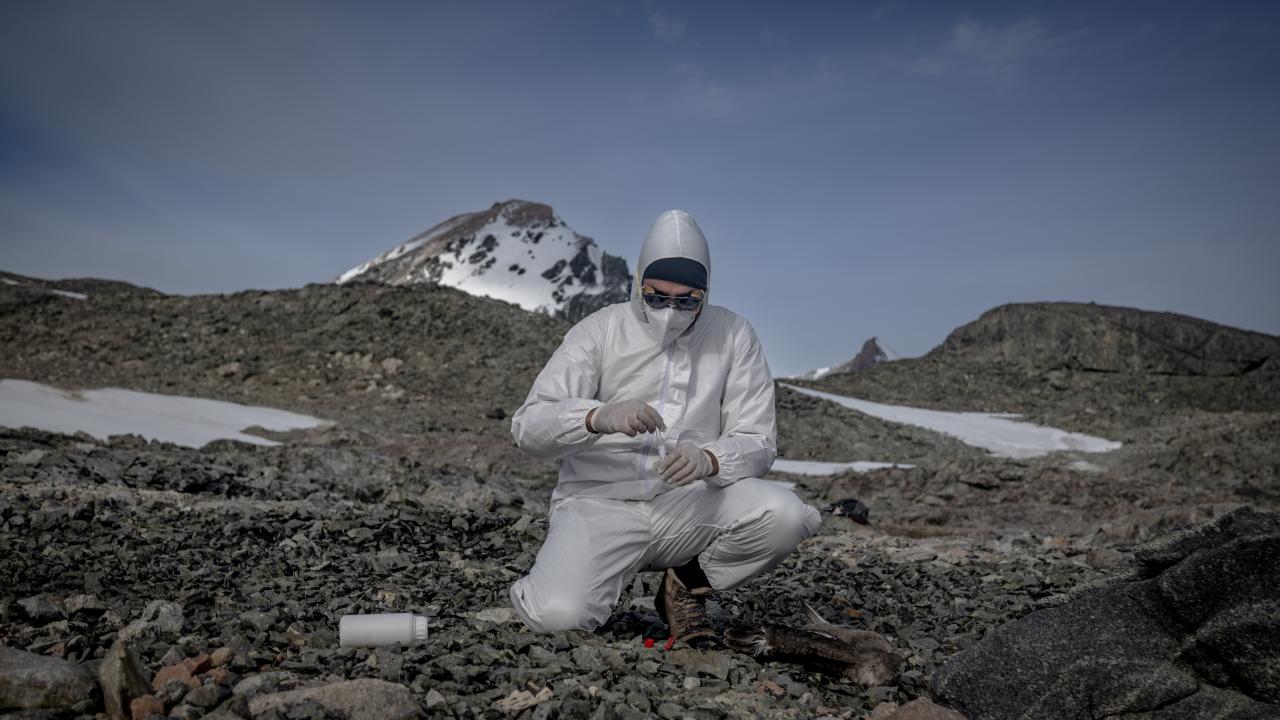 Kıtada önlemler alarak çalışmalarını yürüten ve canlılarla yakın temas içinde çalışan ekip, sahada maske, eldiven, gözlük ve koruyucu elbise kullandı.
