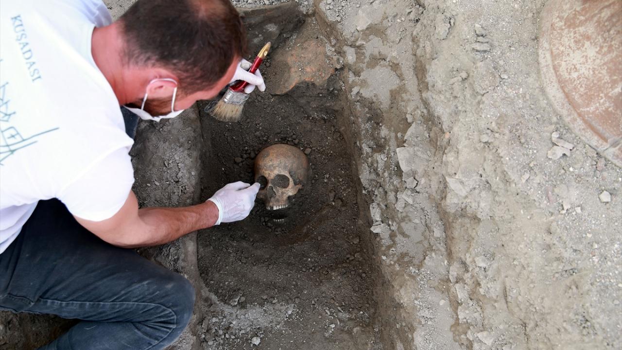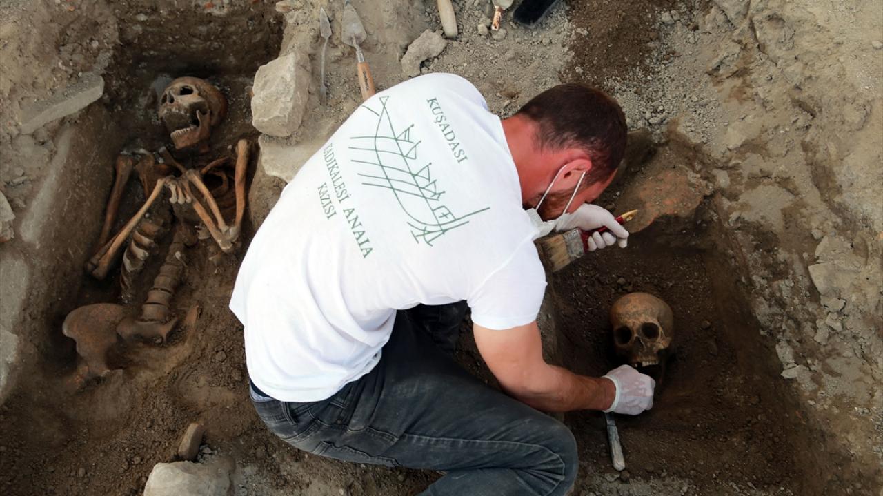 Kuşadası Kadı Kalesi kazılarında insan iskeletleri bulundu